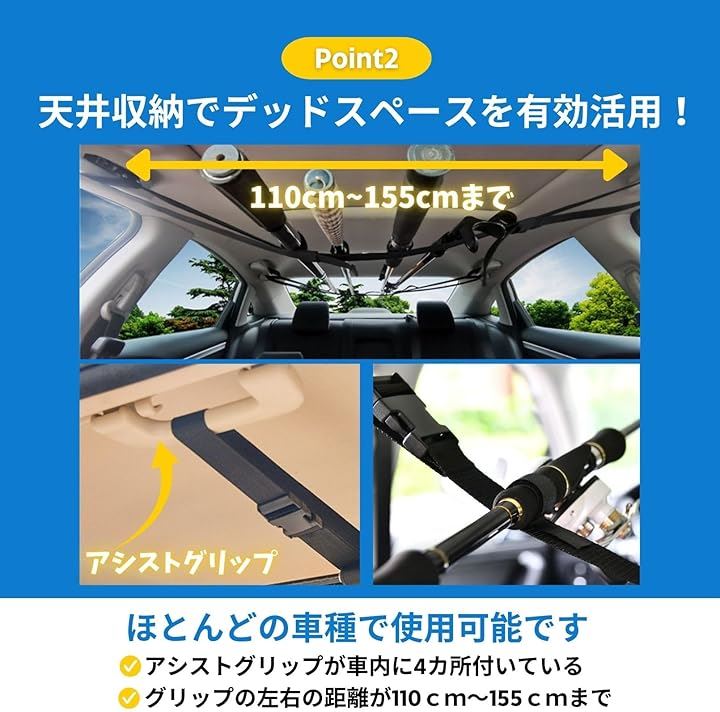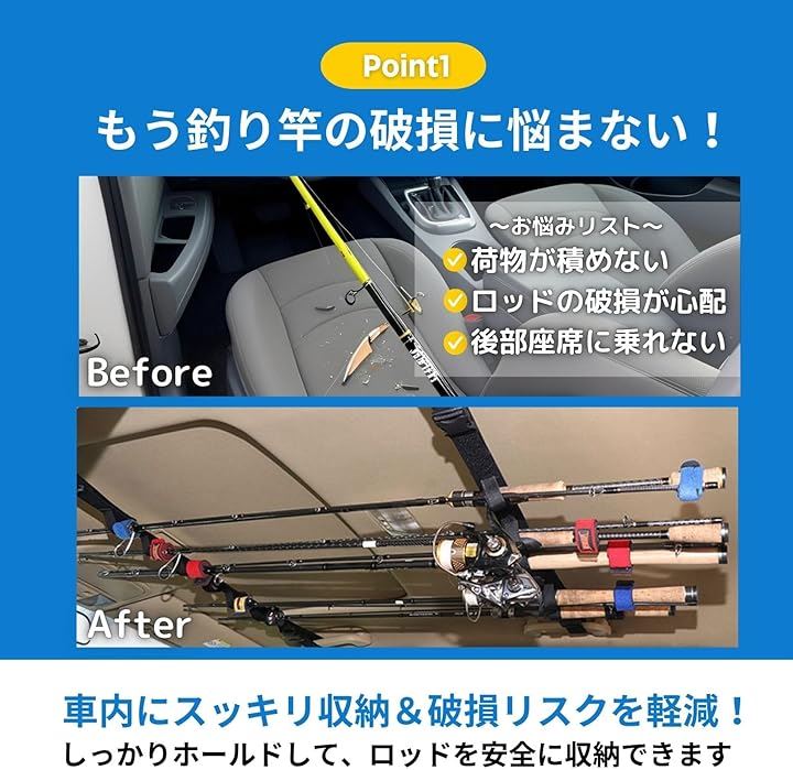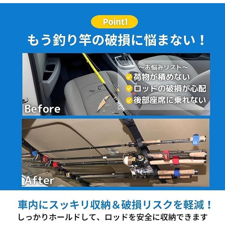 ロッドホルダー 車 車載ロッドホルダー ロッドキャリー 釣竿ホルダー 車内 5本収納可能 ロッドベルト