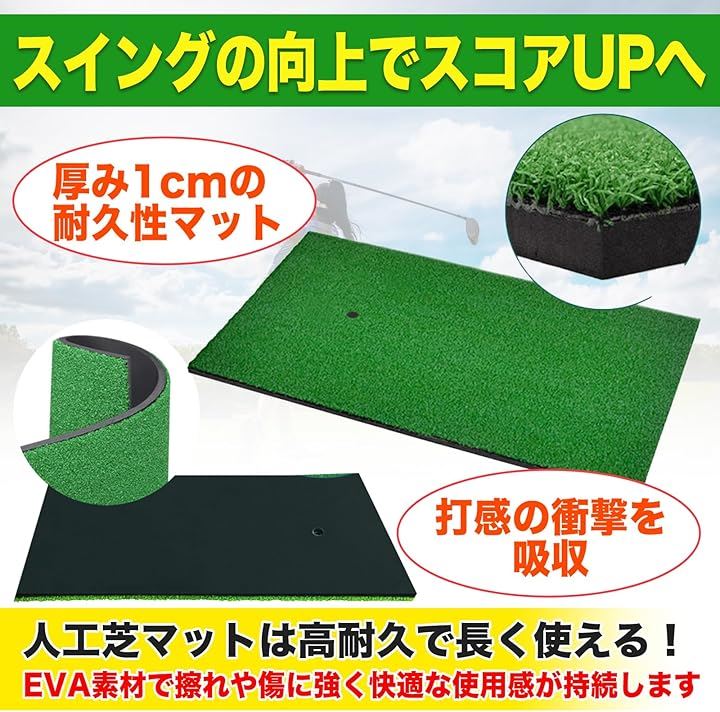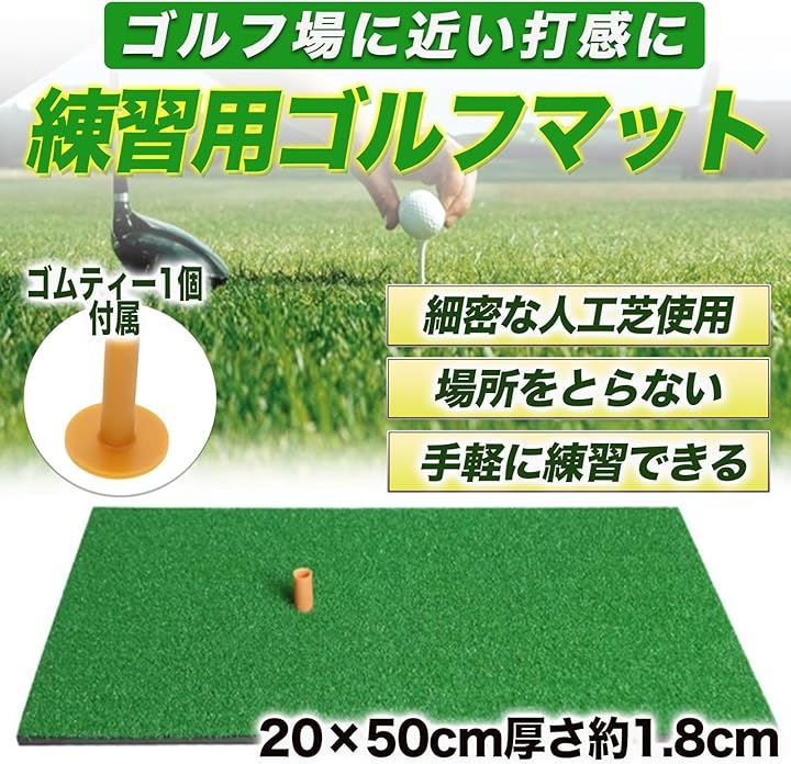 MONOSTORE ゴルフマット パターマット 屋外 室内 アプローチ 練習用 素振り スイング ゴムティー1本付き 20cmx50cm