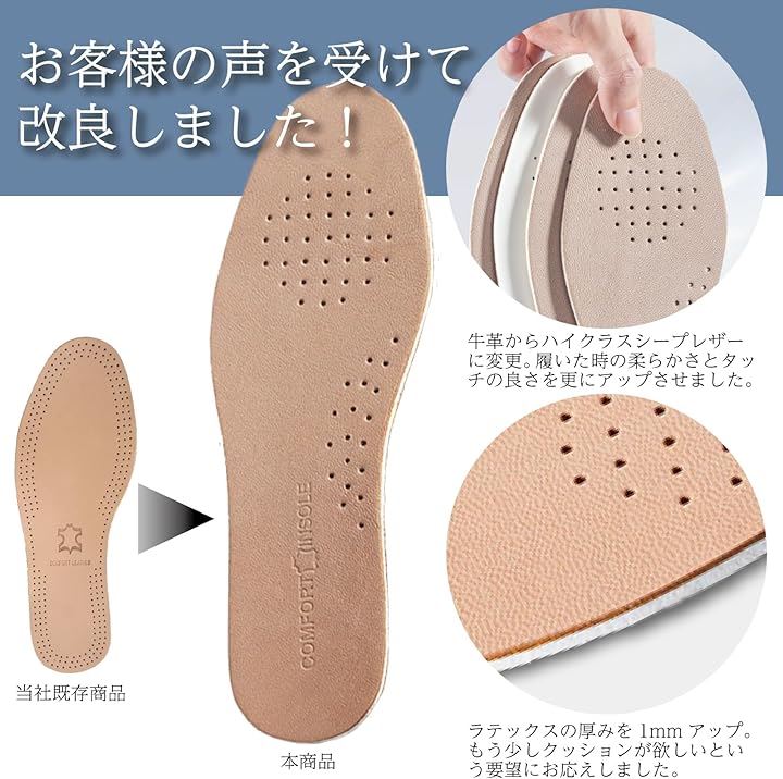 NIJISoRa 革靴 インソール 薄型 メンズ 中敷き ヌメ革 本革 厚み