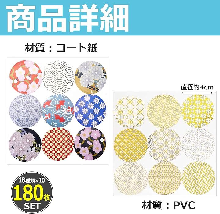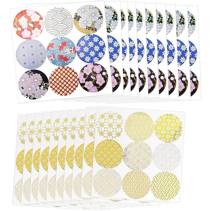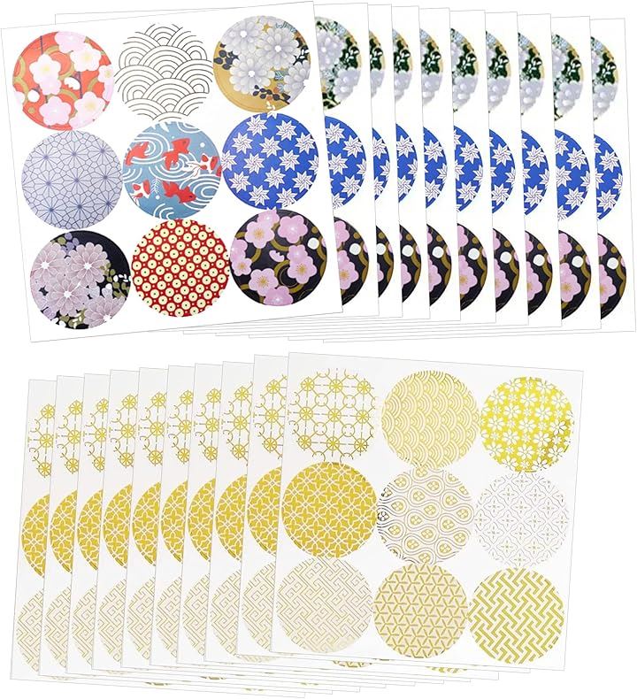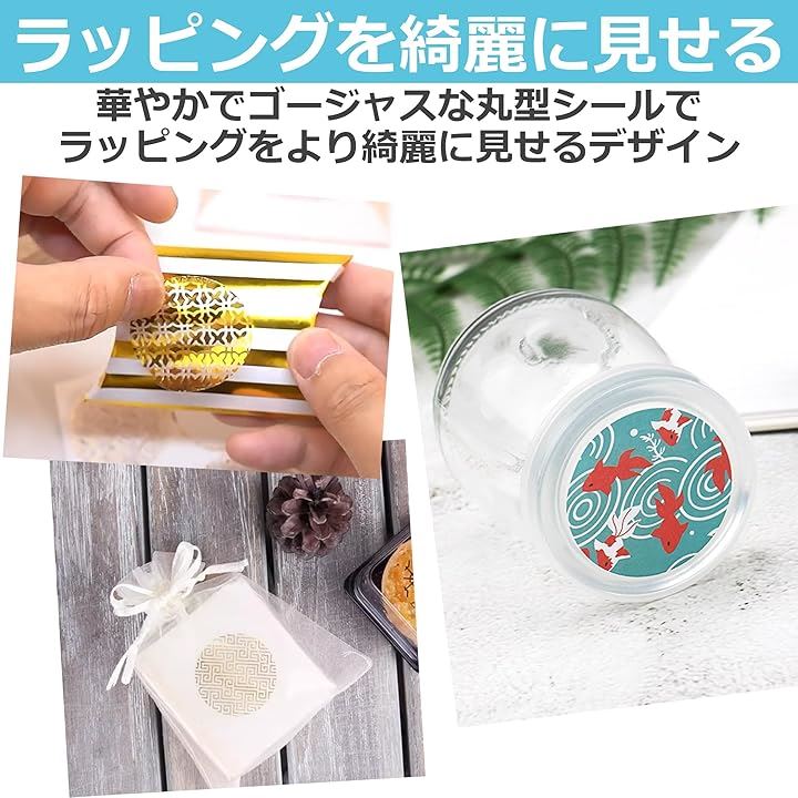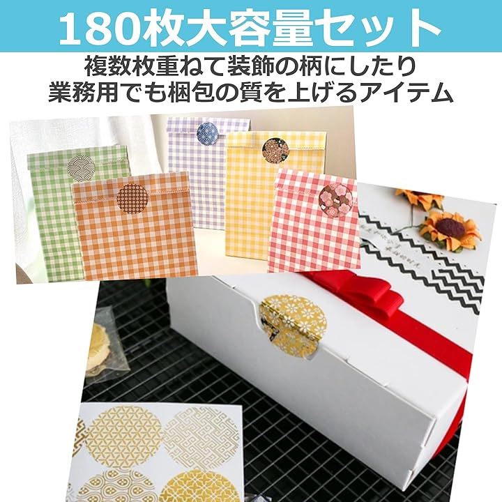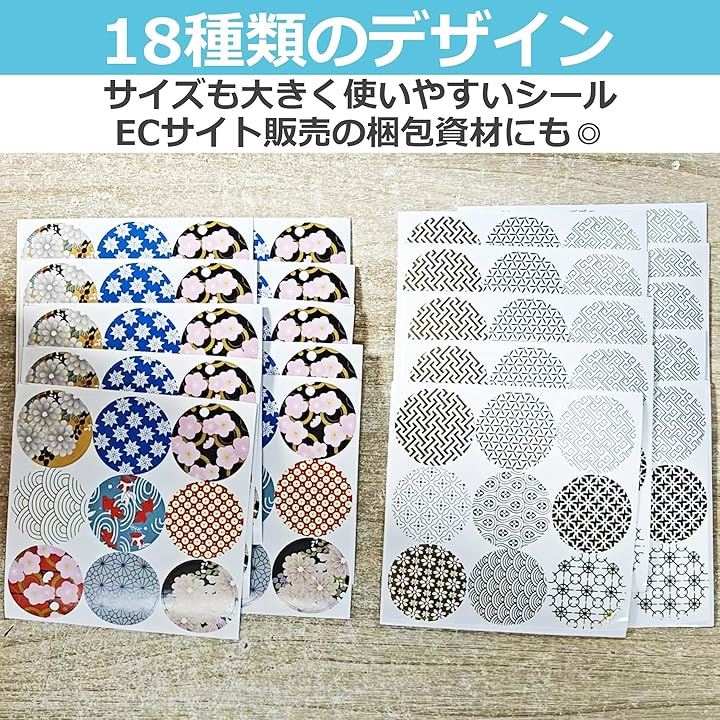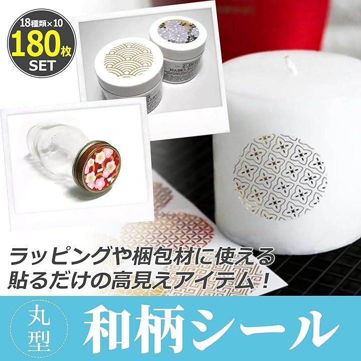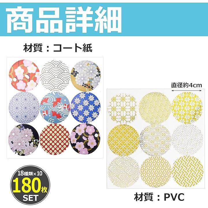 EdisonBrain シール 和柄 箔押し 封印 18種類 180枚セット ラッピング ステッカー 和風 封かん お祝い 招待状 丸シール ギフト お手紙 差し入れ