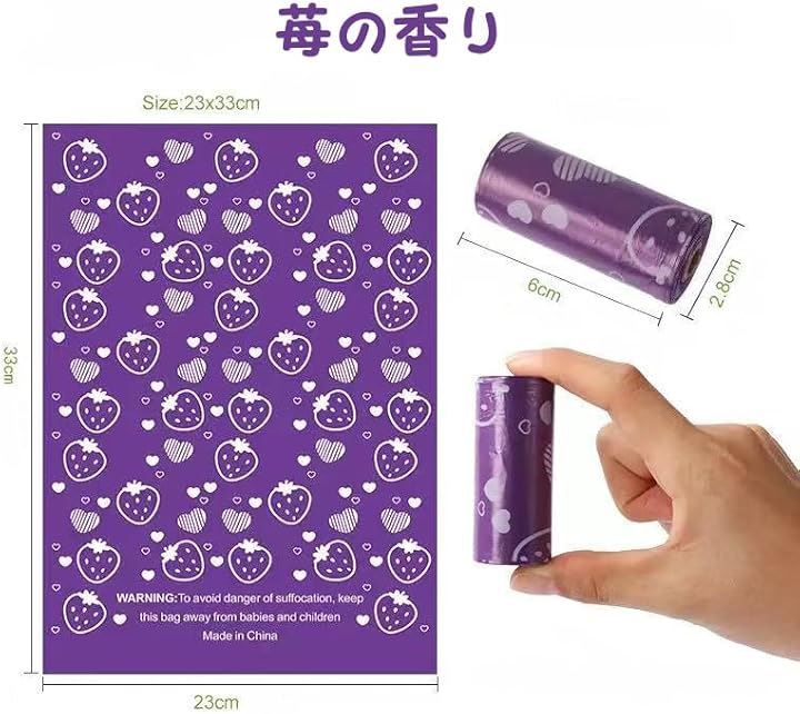 香りつき Yuni Muniうんち袋 うんちが臭わない袋取り出し容器と首ひもクリップ付き 苺の香り コーヒーの香り メロンの香り犬 ペット