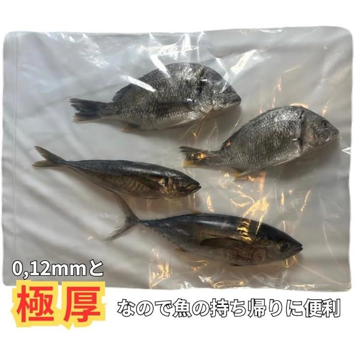 釣りに最適。極厚0.12mmビニール袋で大型魚も安心収納 釣り場で釣り上げたばかりの真鯛やヒラメ、ハマチなどの大型魚も余裕で入る、極厚0.12mmの特大ポリ袋。