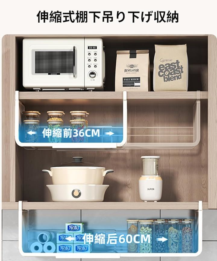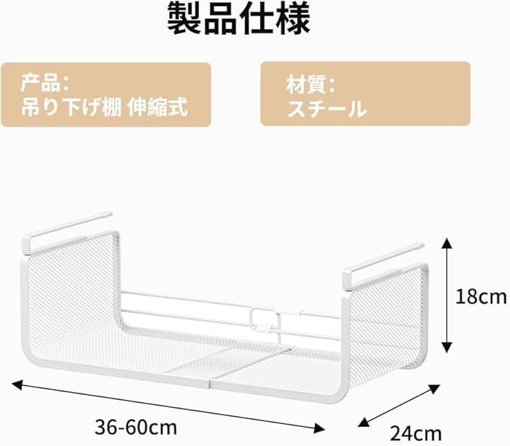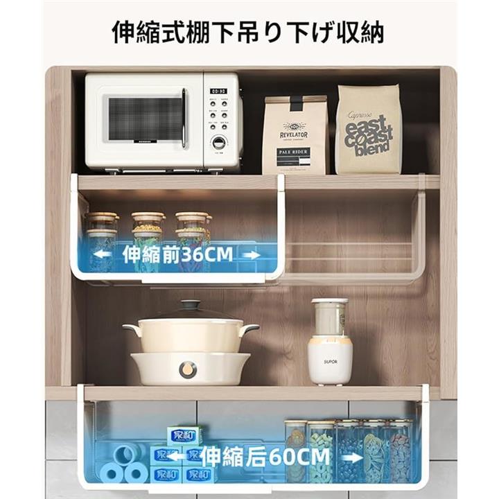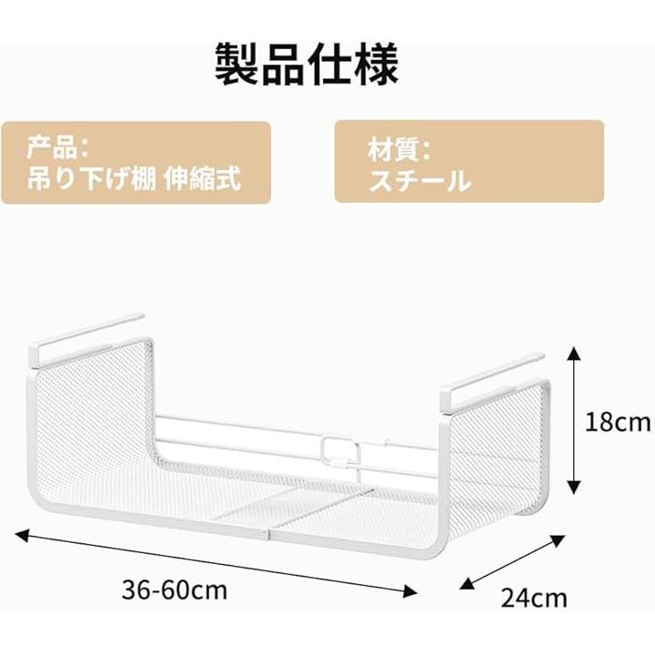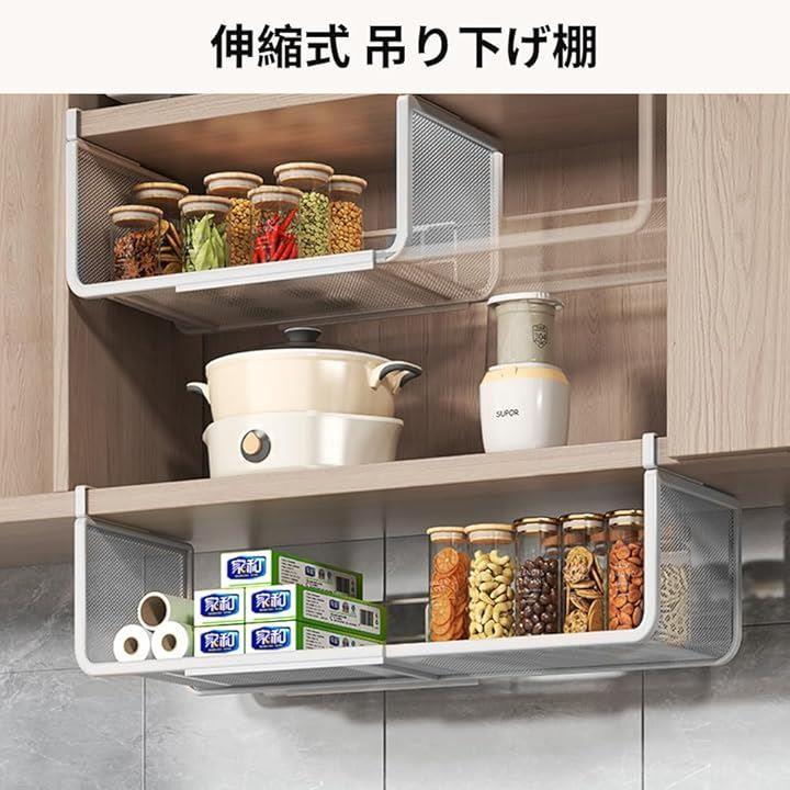 吊り下げ棚 伸縮式 差し込み式 戸棚下 吊り戸棚 収納ラック デスク下 戸棚下収納 吊戸棚 バスケット キッチン収納 掛け式 省スペース