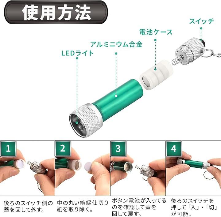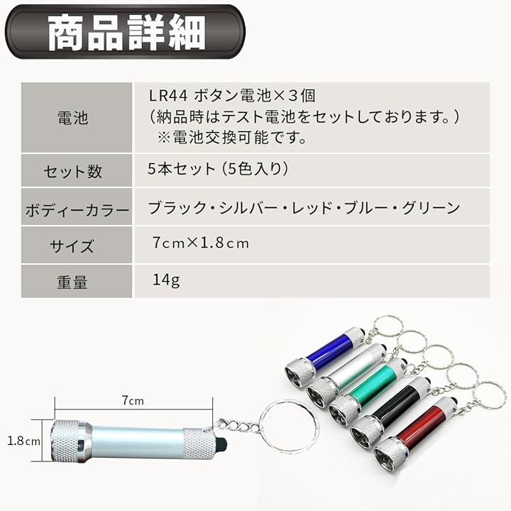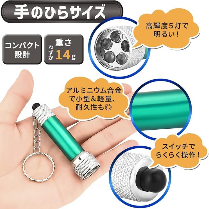 GLOFIN LEDライト 小型 ミニ キーホルダー キーライト 5本セット 照明 屋外 明るい 高輝度 軽量 懐中電灯 電池式 鍵 車内 防災 災害 夜道