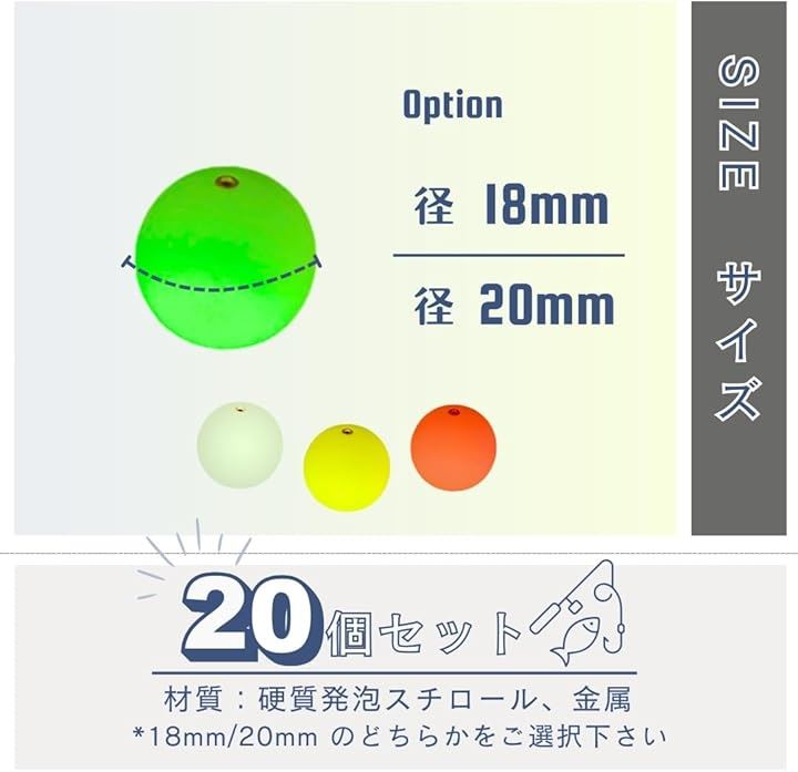 発泡ウキ シモリ玉 釣り具 ぶっこみサビキ 仕掛け 中通し 玉浮き 20個セット