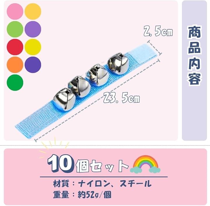 リングベル リストベル 鈴 楽器 演奏会 ハンドベル 打楽器 カラフル 10色 10個セット