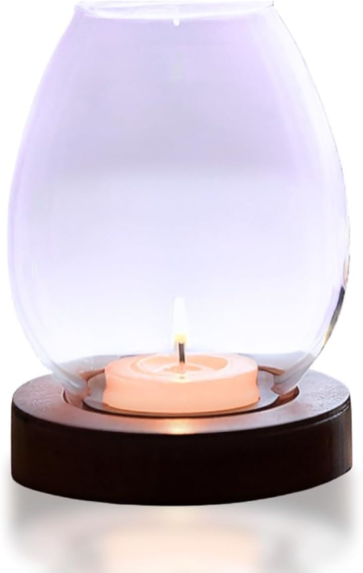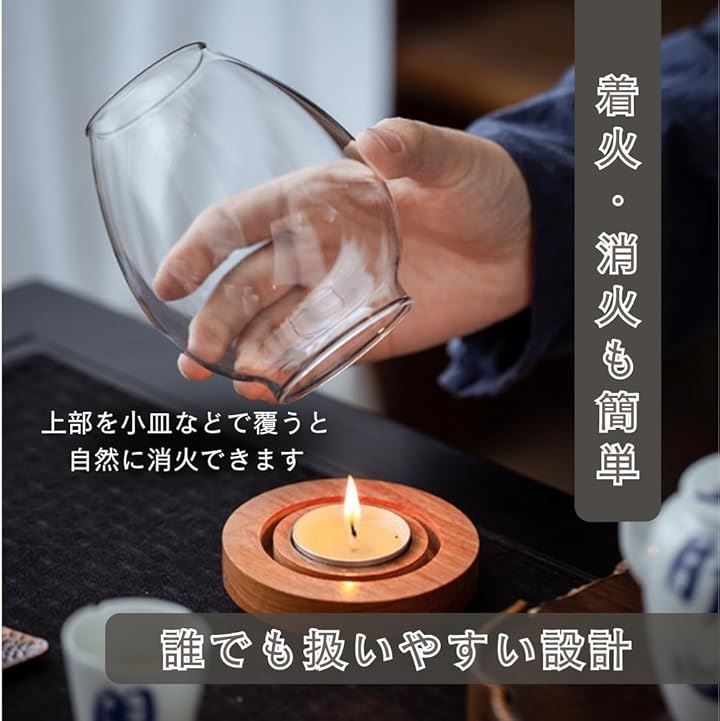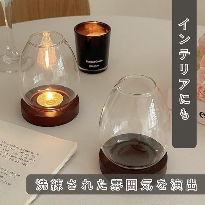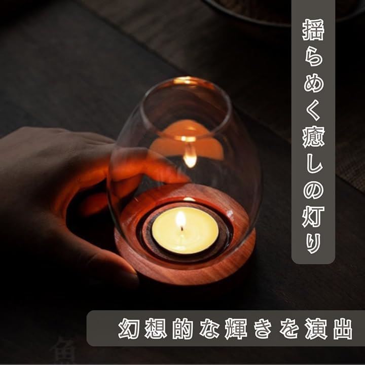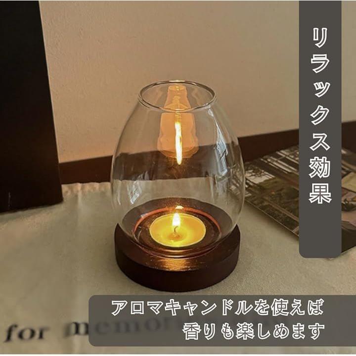 キャンドルホルダー キャンドルスタンド ティーライト アンティーク ガラス 木製 台座付き