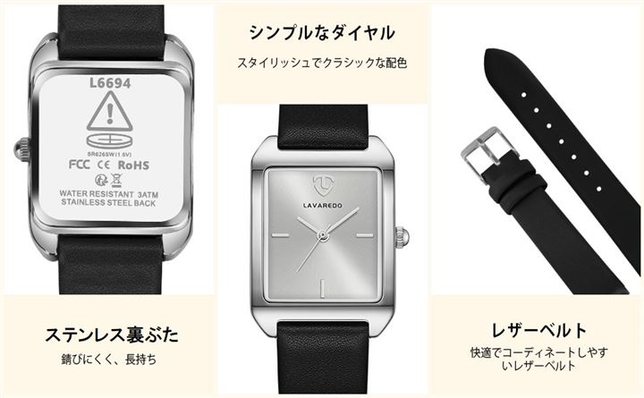 腕時計 レディース アナログ表示 クオーツ うで時計 レザーベルト 細め おしゃれ 防水 方形 シンプル 女性用