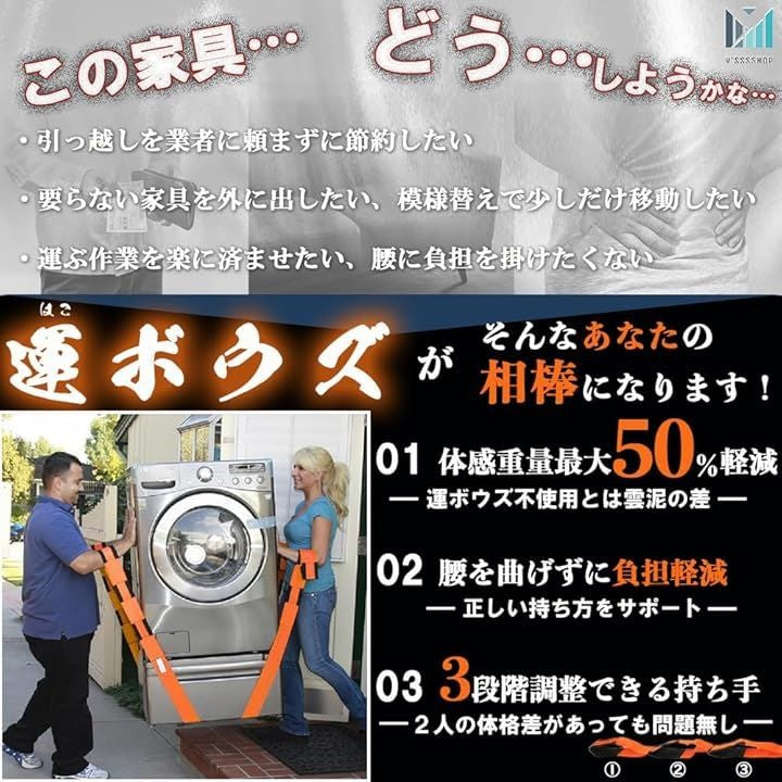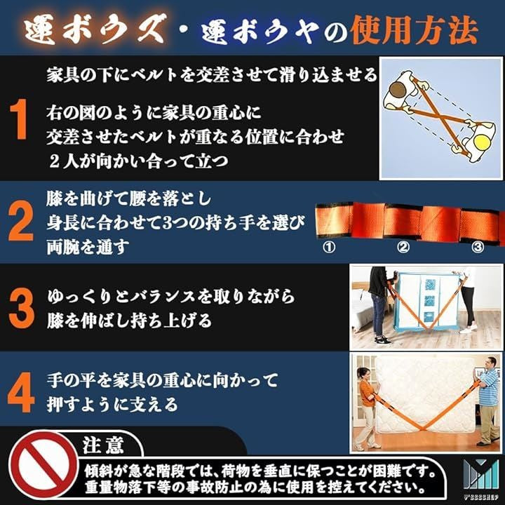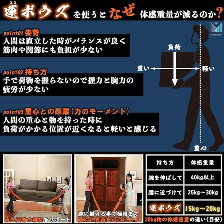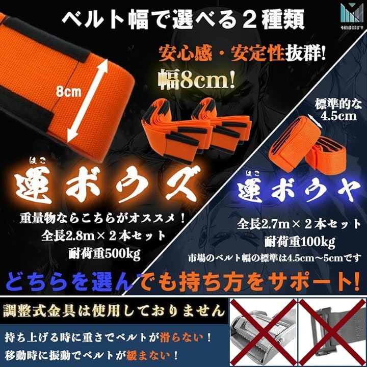 重いものは無理なく持つ。 運搬ベルト 二人用 ハンドストラップ型