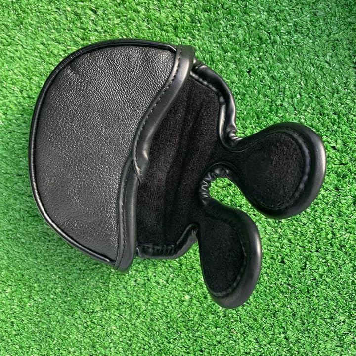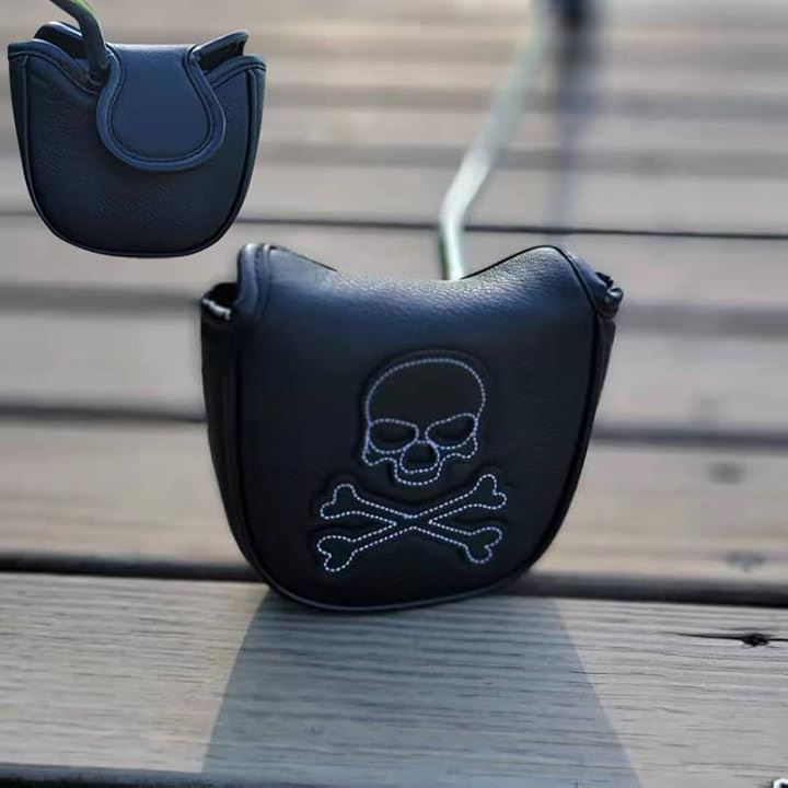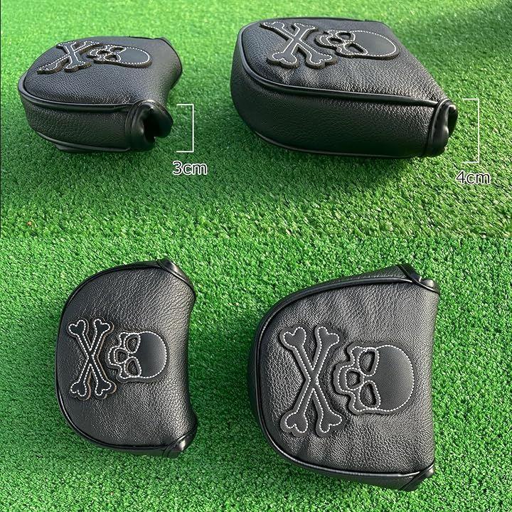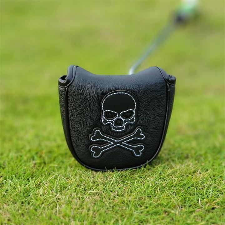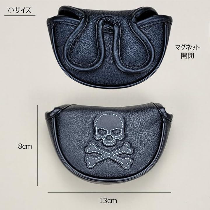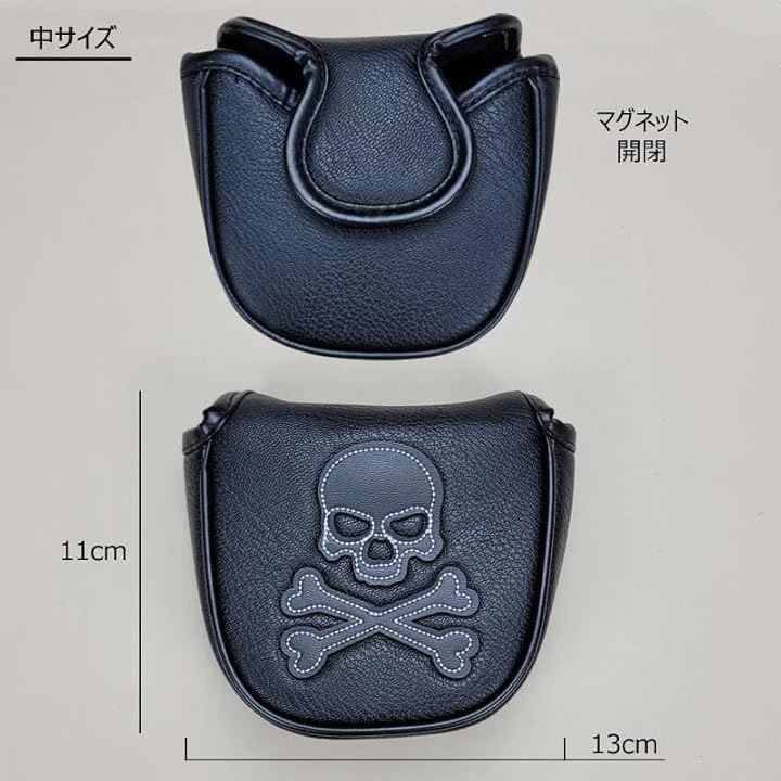 ゴルフ パター カバー ドクロ スカル センター シャフト 小型 黒 PU レザー マグネット 磁石