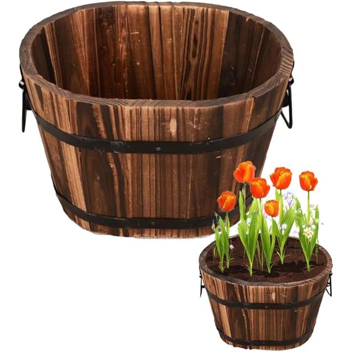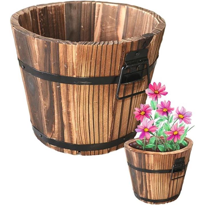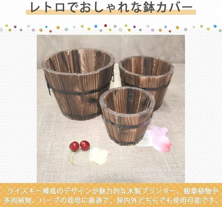 鉢カバー 樽柄植木鉢 木製 ウイスキー樽 鉢植え ガーデニング ウッドバレルプランター
