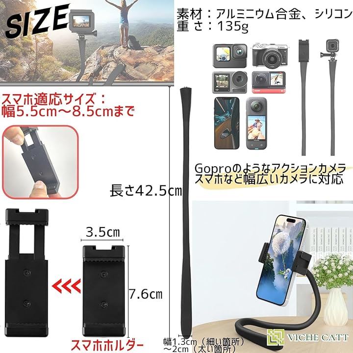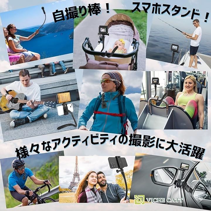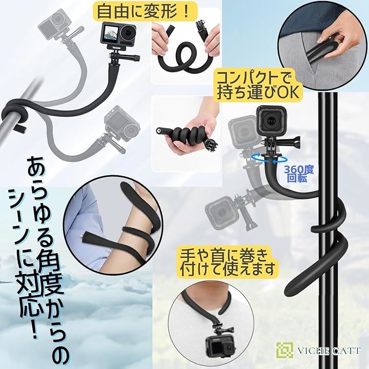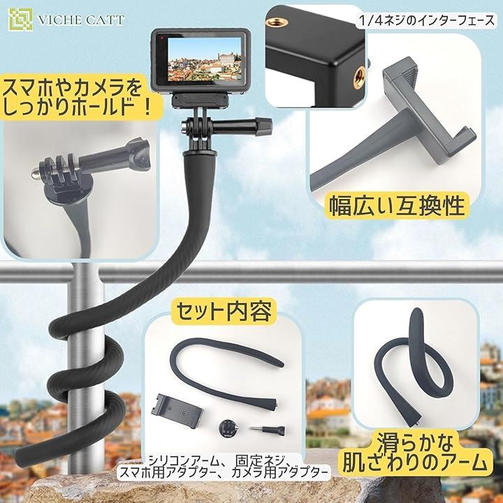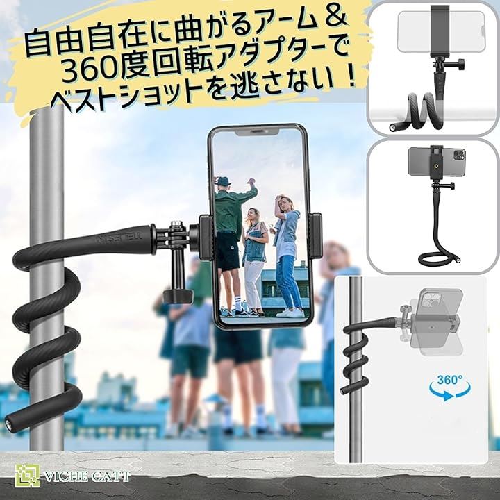フレキシブルアーム スマホスタンド 自撮り棒 360度回転 gopro対応 マウント