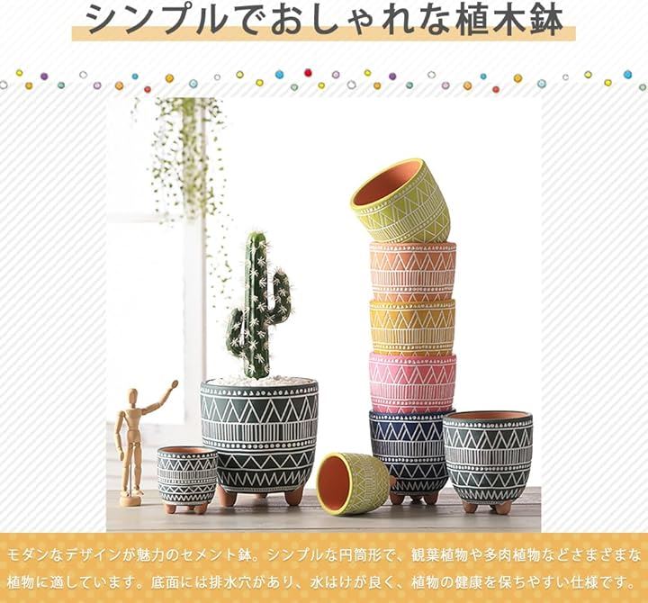 「機能性と耐久性を兼ね備える」この植木鉢は、優れた耐久性を誇るセメント素材を採用。