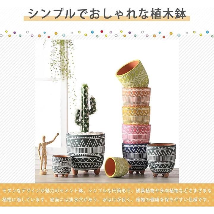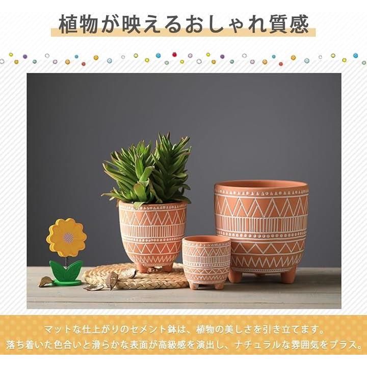 「植物が映えるおしゃれ質感」マットな仕上がりのセメント鉢は、植物の美しさを引き立てます。
