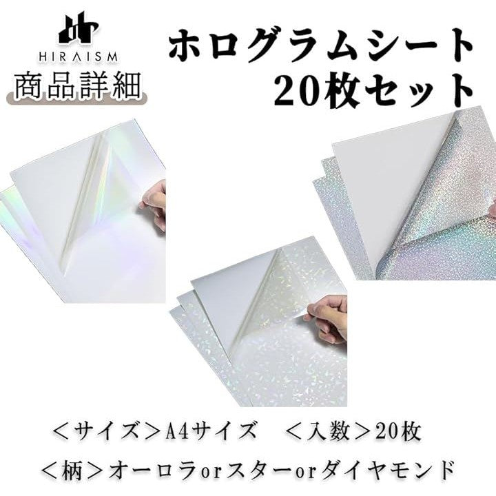 ホログラムシート キラキラ 防水加工 A4サイズ 20枚セット