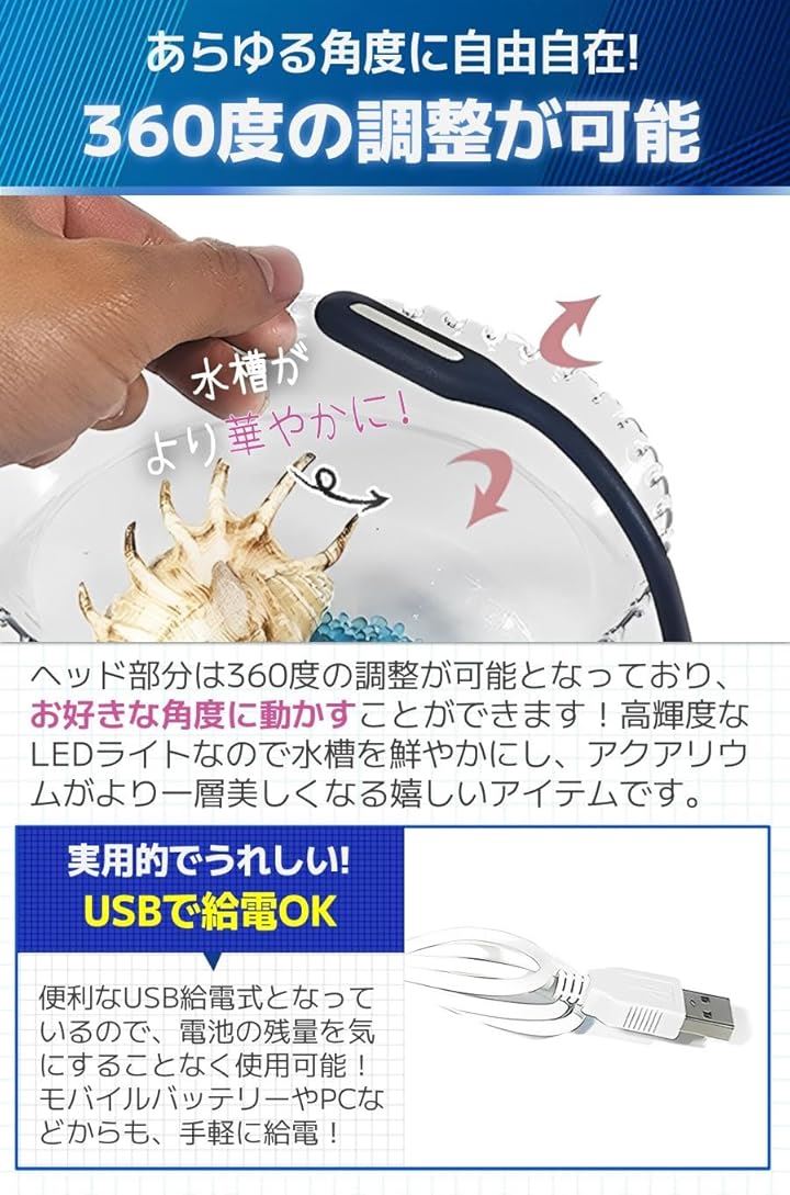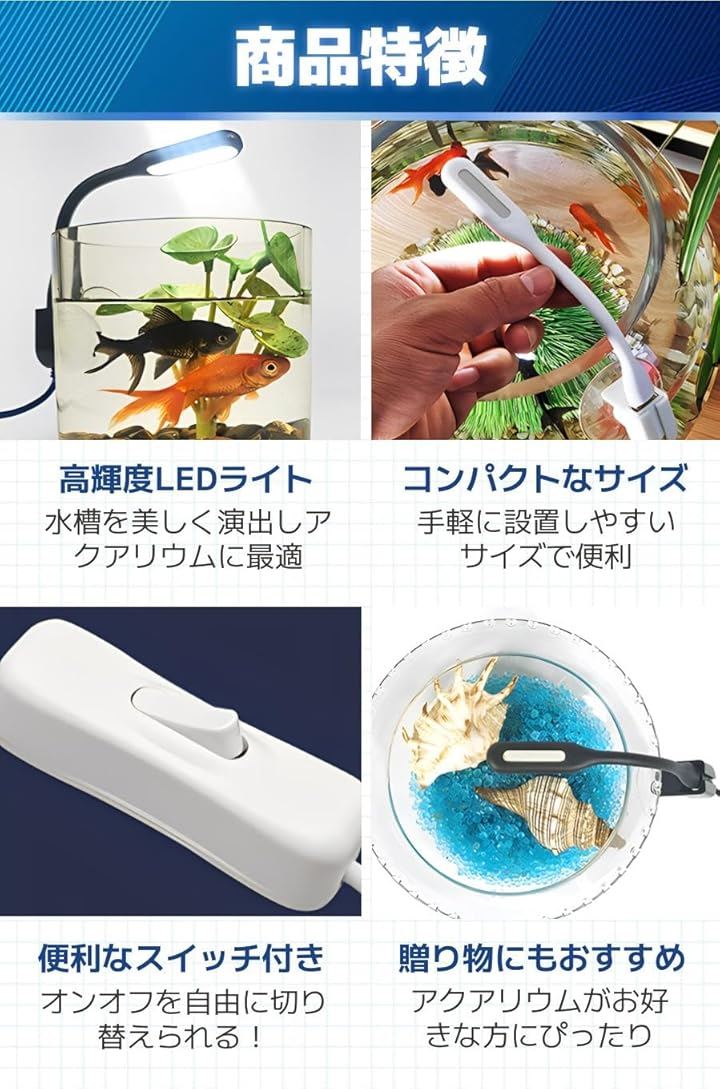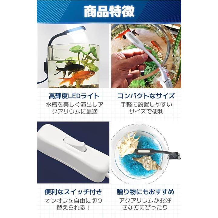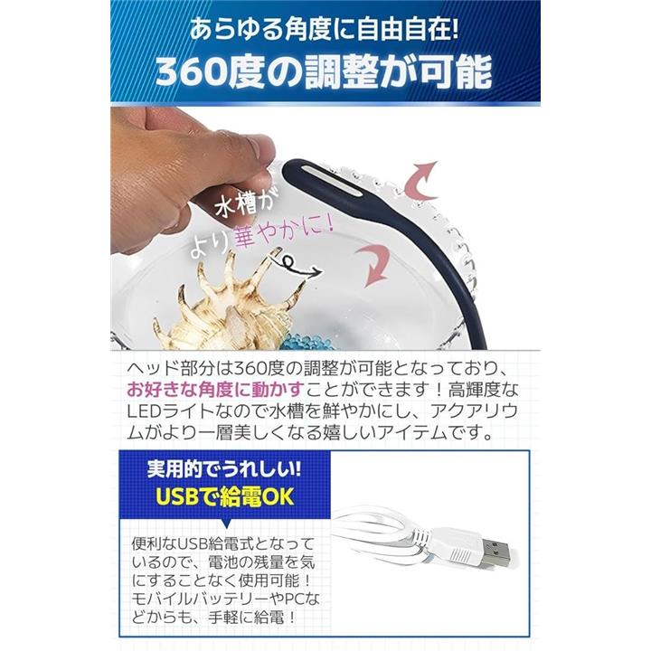 水槽 ライト アクアリウム 小型 照明 熱帯魚 金魚 USB給電 吸盤付き 省エネ