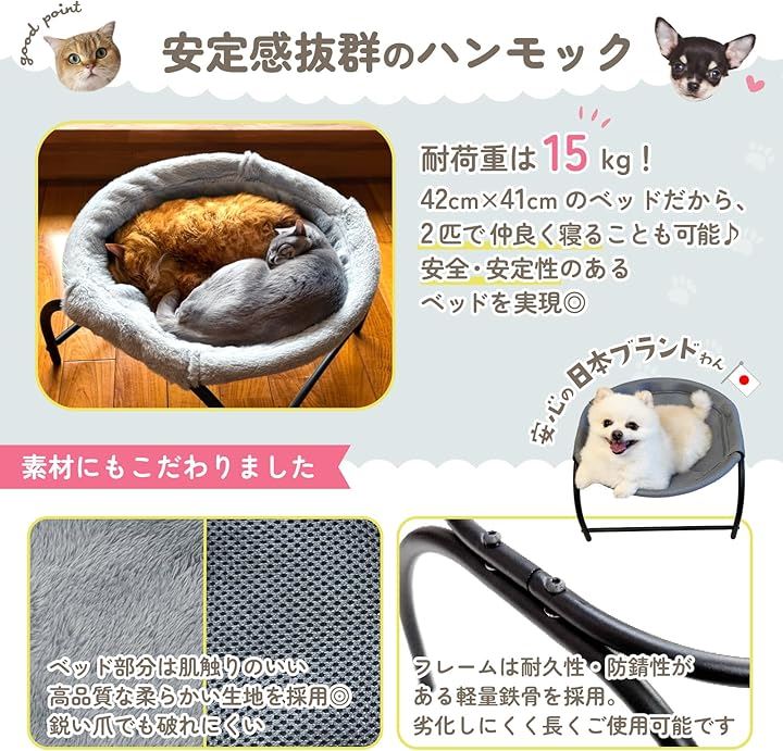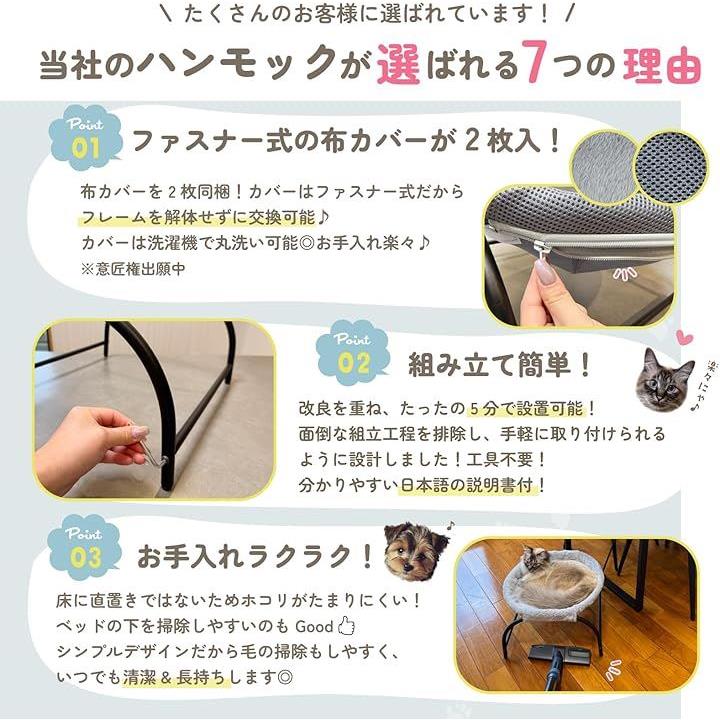 fabuon life 2025年新モデル 猫 犬 置き型 ハンモック ベッド ペットベッド 大型 カバー2枚入り ファスナー式 組立簡単 洗濯可能 滑り止めシール付 工具不要 オールシーズン対応 日向ぼっこ ストレス解消 耐荷重15kg 日本語説明書付き |