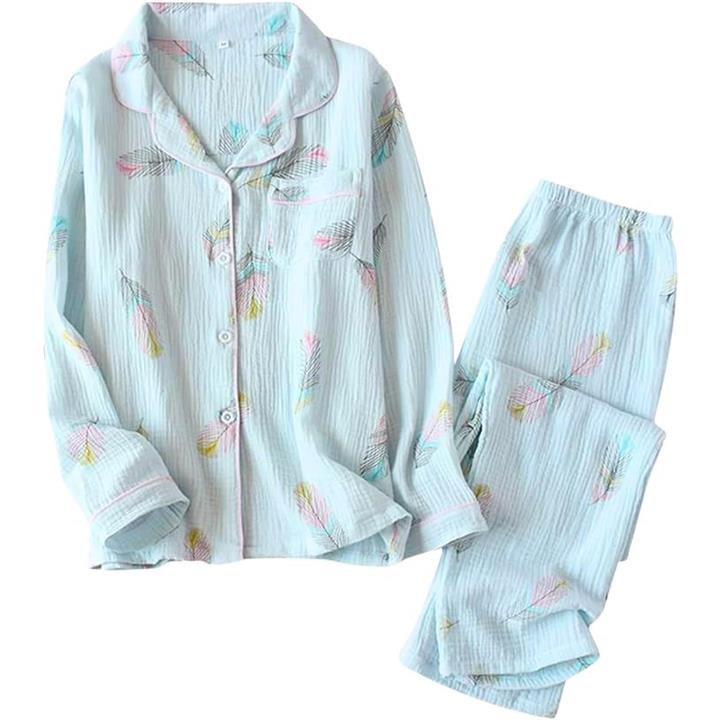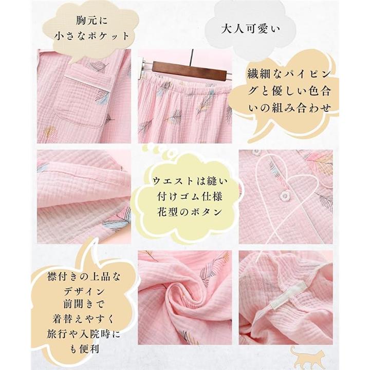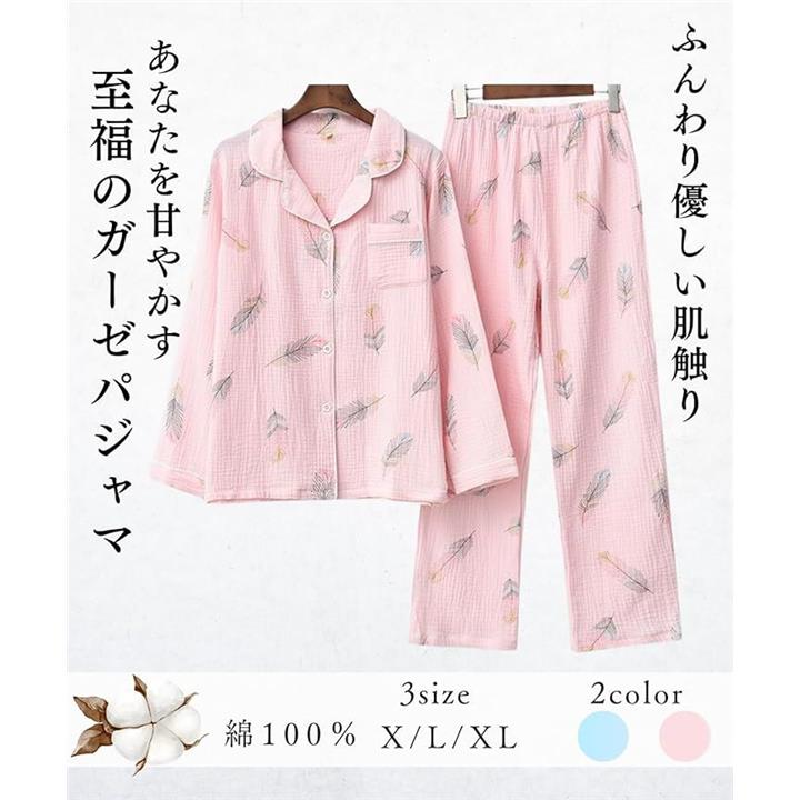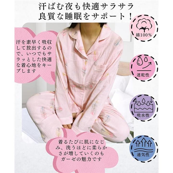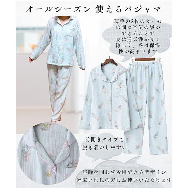 [MowaLef] 「モワレフ」 綿100 ダブルガーゼ パジャマ レディース 長袖 上下セット 春 夏 秋 前開き 襟付き ルームウェア 柔らかい 通気性 吸汗 快適 部屋着 寝巻き |