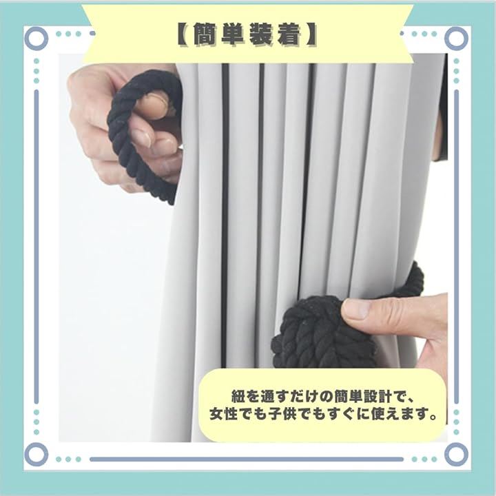 カーテンアクセサリー タッセル ホルダー ロープ式 カーテンタッセル 2個セット