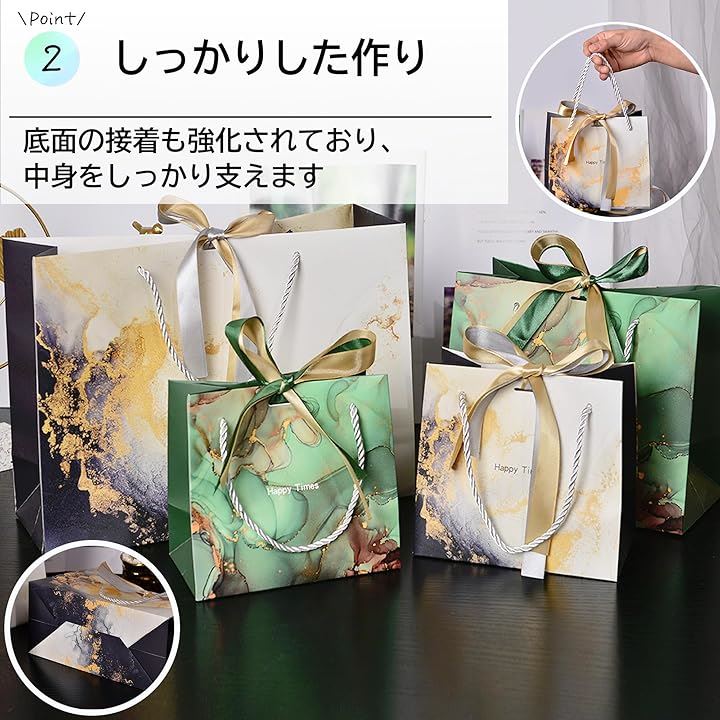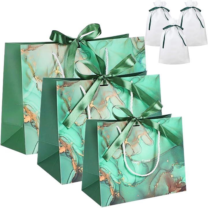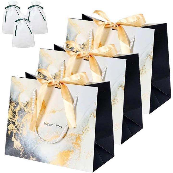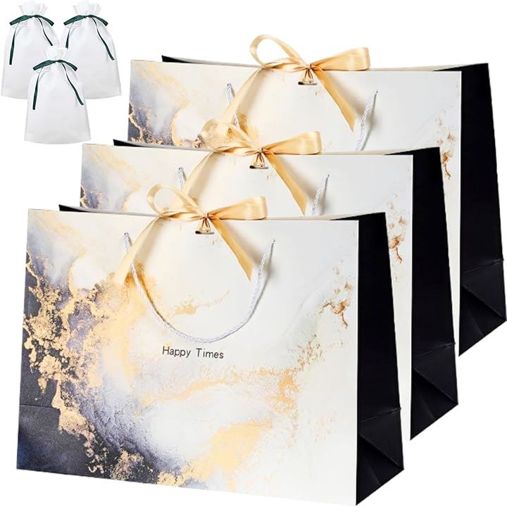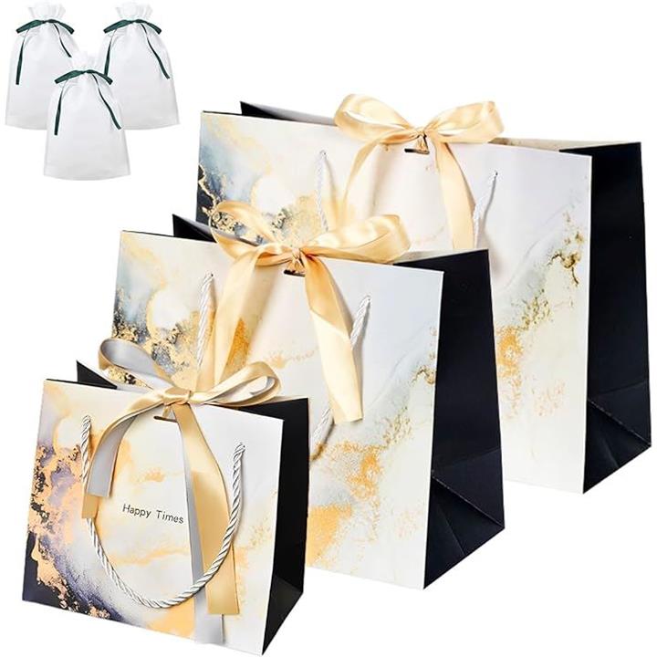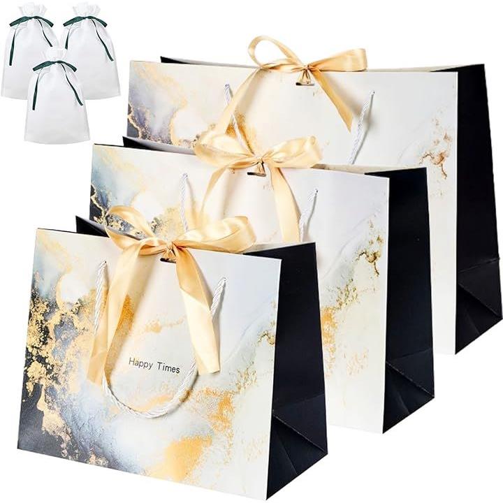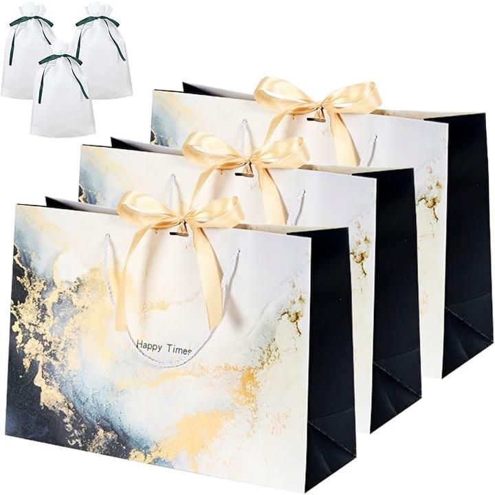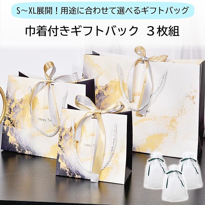 merrytime ギフトバッグ 3枚セット 手提げ袋 ラッピング袋 紙袋 巾着袋3枚付き 厚手 ギフト包装 プレゼント用 大理石柄 引出物袋 クリスマス 結婚式 |
