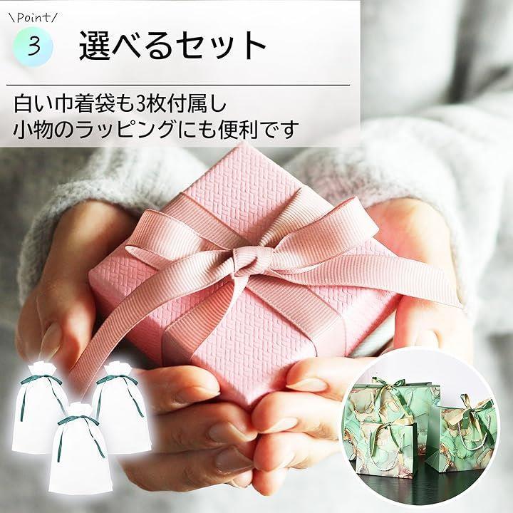 さらに、白い巾着袋が3枚付属し、小物のラッピングにも便利です。