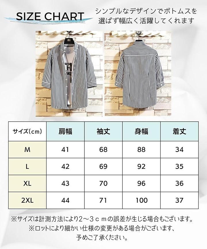 シンプルながら洗練されたスタイルを叶えるストライプシャツを、ぜひお試しください。