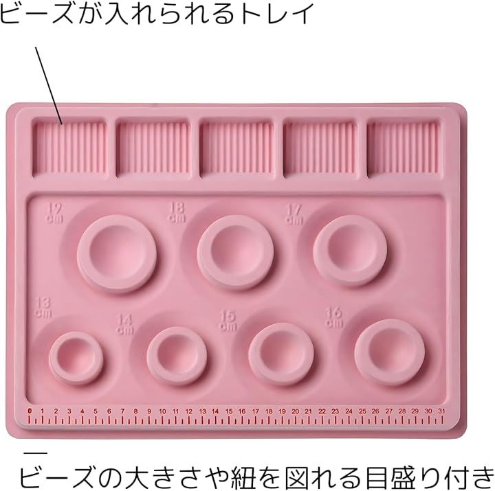 ブレスレット デザインボード 13cm~19cm対応 ビーズアクセサリー用 作業トレー ハンドメイド 初心者向け 上部に5つビーズおきもあります。