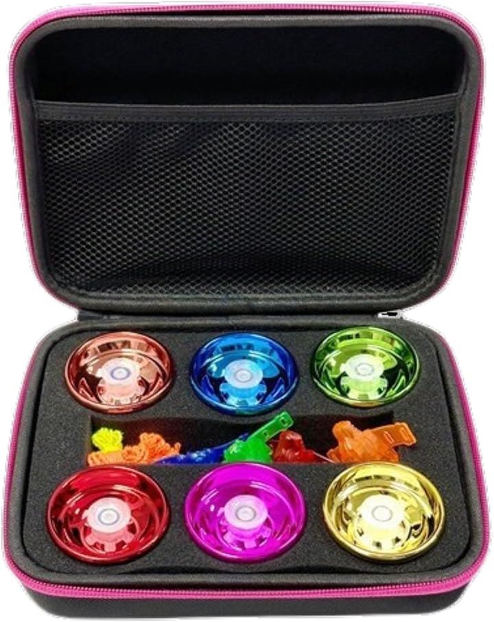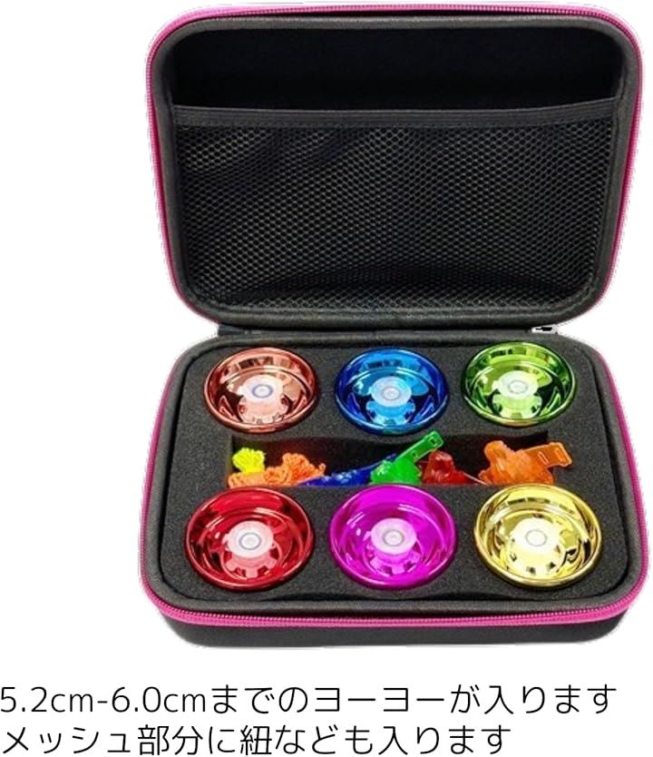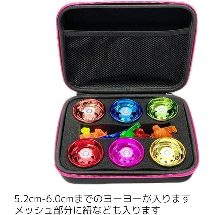ヨーヨー収納ケース 6個用 衝撃吸収パッド付き メッシュポケット付き キャリーバッグ コマ収納バッグ アクセサリー対応 ダブルジッパー付き 携帯ポーチ