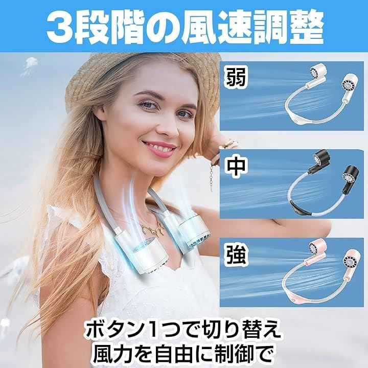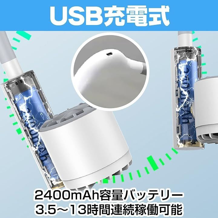 ネックファン 携帯扇風機 ウェアラブル ポータブル USB充電 180度回転 熱中症対策 冷却 アウトドア スポーツ 通学通勤