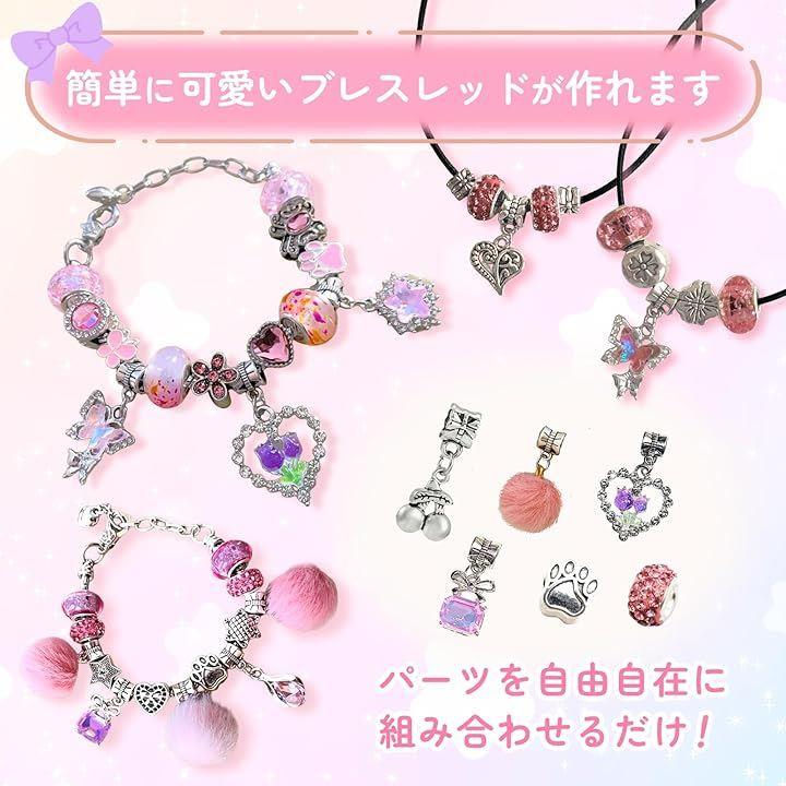 アクセサリーキット 女の子 子供 ブレスレット作り メイキングトイ 72点 小学生 プレゼント 誕生日 クリスマス チャーム おしゃれ ビーズセット