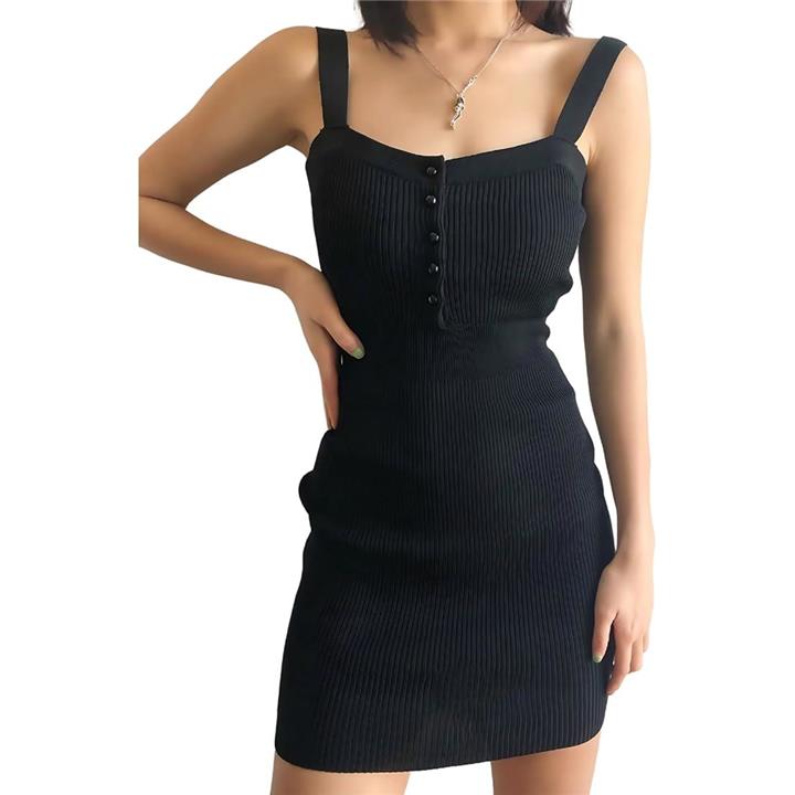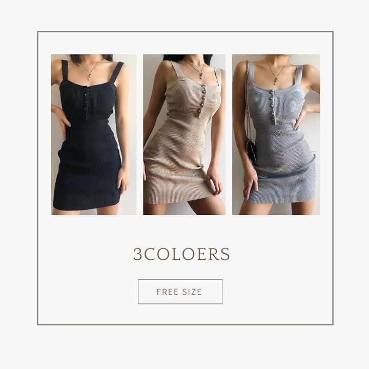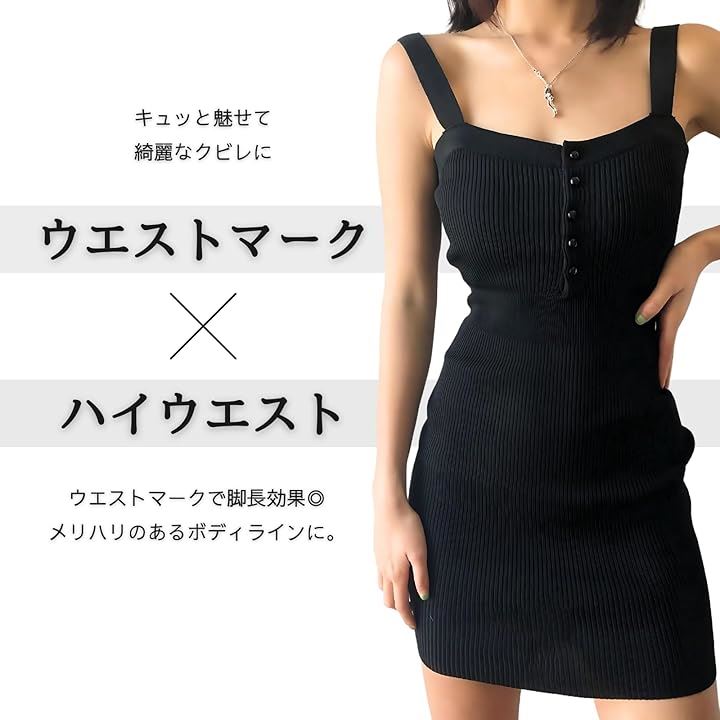レディース リブ ニット タイト ミニ ワンピース セクシー 大人 女子 ボディコン おしゃれ かわいい 胸元 開き ドレス ノースリーブ エモい フロント ボタン ロング ウエスト ストレッチ 膝上 丈 ミニ丈 スリット フォーマル カジュアル