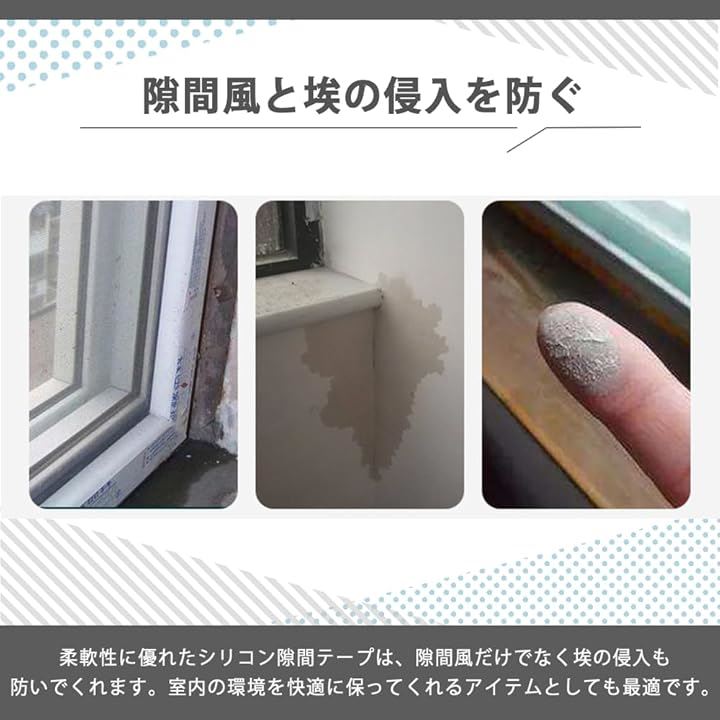 AZNBALE ドア 隙間 防音 窓 隙間テープ 隙間風防止 シリコーンゴム素材 隙間パッキン 室内