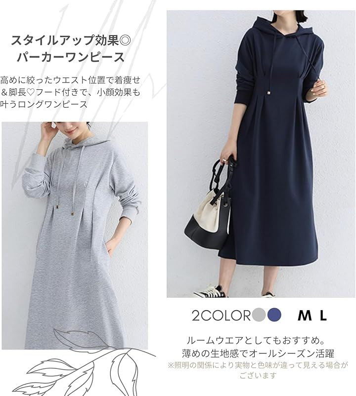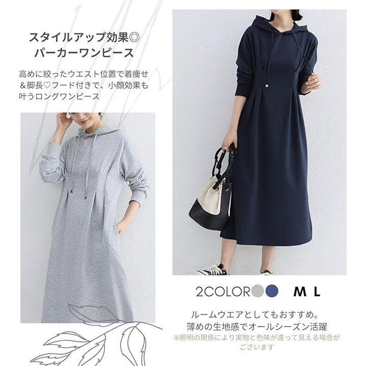 パーカー ワンピース レディース スウェットワンピース 長袖 大きめ シンプル 膝丈 部屋着 韓国 長そで 40代