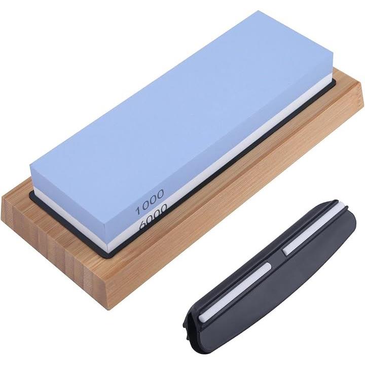 包丁研ぎ石 プロ 両面砥石 1000番 6000番 セット 初心者 滑り止め竹砥石固定台 ゴム台 角度固定ホルダー付き ほうちよう砥ぎ 簡単 厚さ30mm