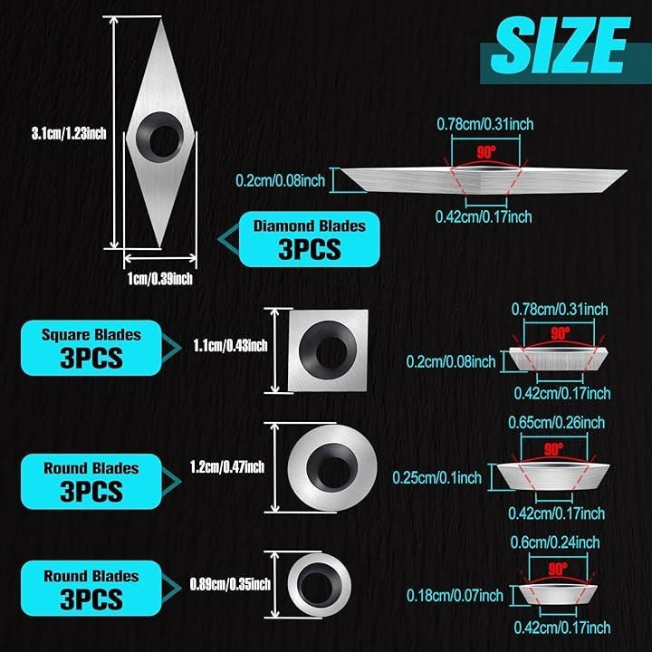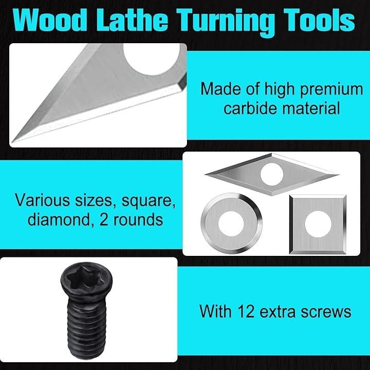 12個入り 超硬カッターインサートセット 木工旋盤用工具 木工機械用ブレード 木製旋盤旋盤工具用 ブレードセット 木工旋盤旋削工具用 木工旋盤工具 超硬旋削インサート 刃先交換式旋盤交換用カッター