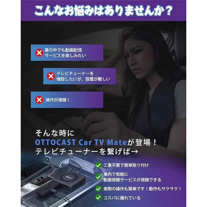オットキャスト 2024 Car TV Mate カーテレビメイト Fire Stick/DVD 対応の車載テレビコンバーター 動画視聴可能 走行中にHDMI入力映像が観れる技適取得済み品