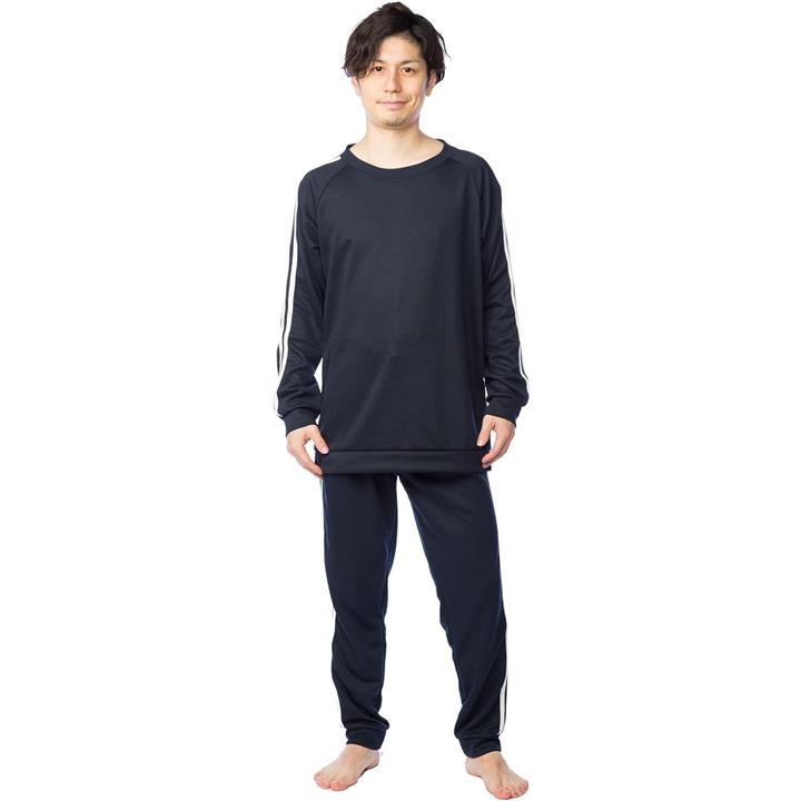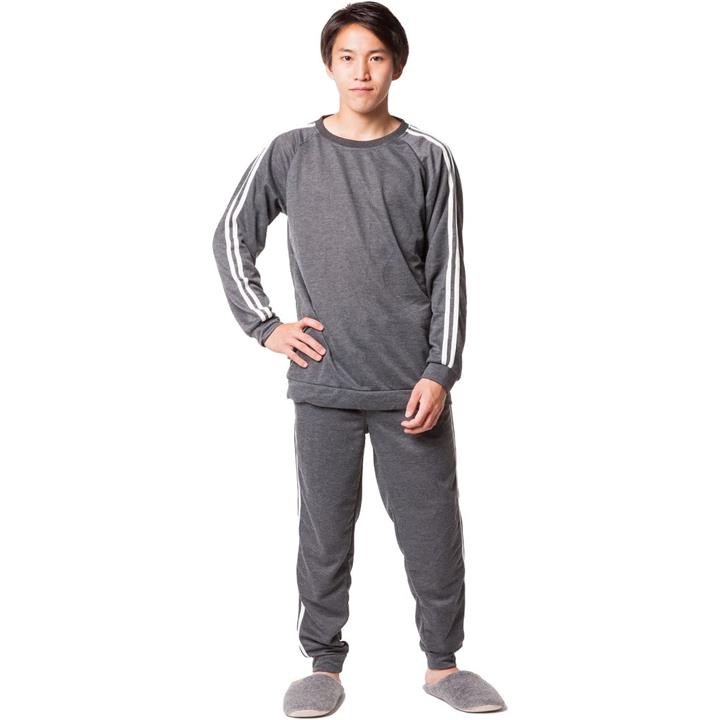[Y's factory] スウェット 上下セット メンズ ルームウェア セットアップ 2本ライン ジョガーパンツ 長袖 長ズボン 裾ゴム 無地 ゆったり あったか パジャマ 部屋着 着心地 |