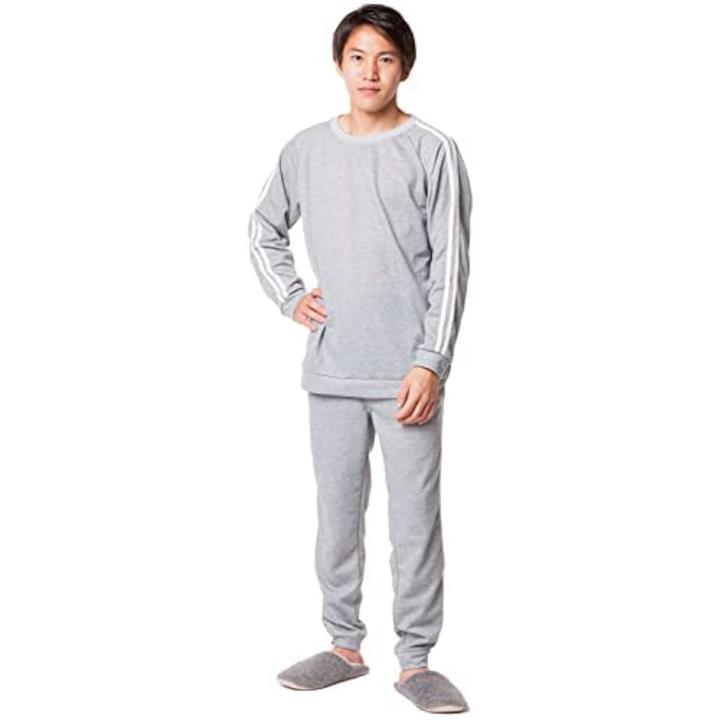 [Y's factory] スウェット 上下セット メンズ ルームウェア セットアップ 2本ライン ジョガーパンツ 長袖 長ズボン 裾ゴム 無地 ゆったり あったか パジャマ 部屋着 秋 冬 着心地 |