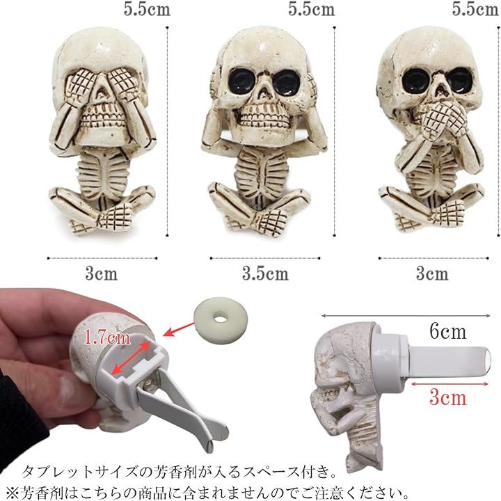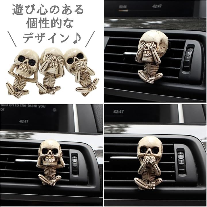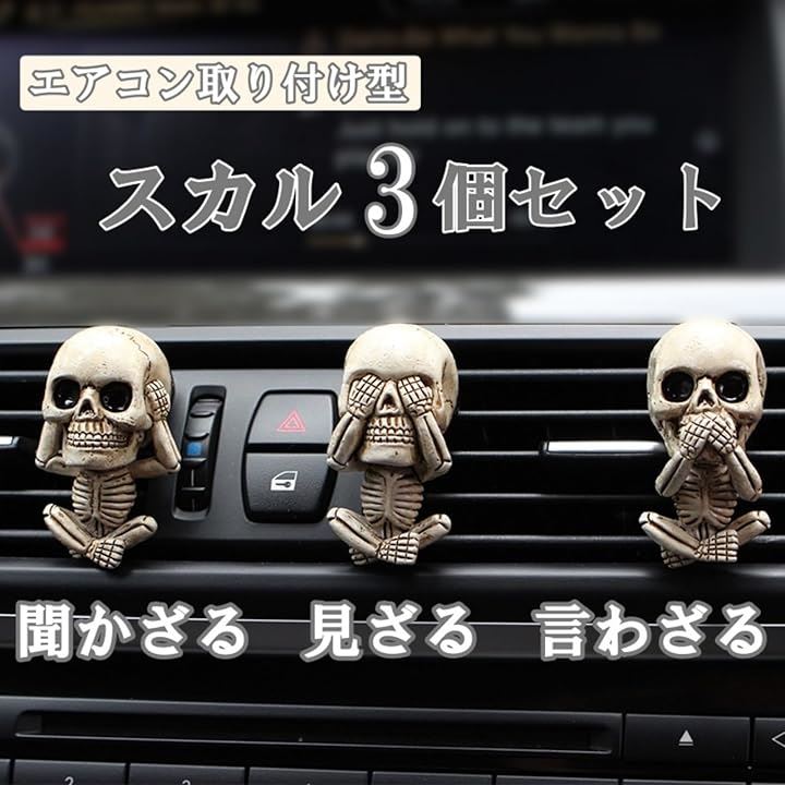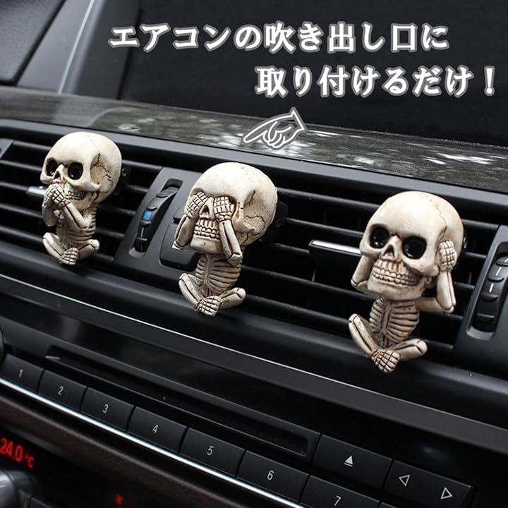 車用 スカル フィギュア 3個セット クリップ式 ドクロ 骸骨 車内 エアコン取付型 インテリア マスコット