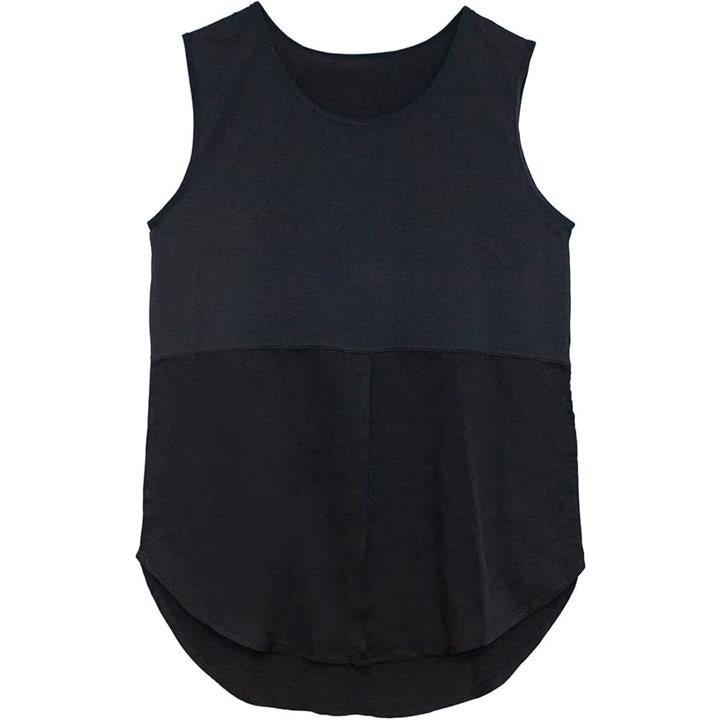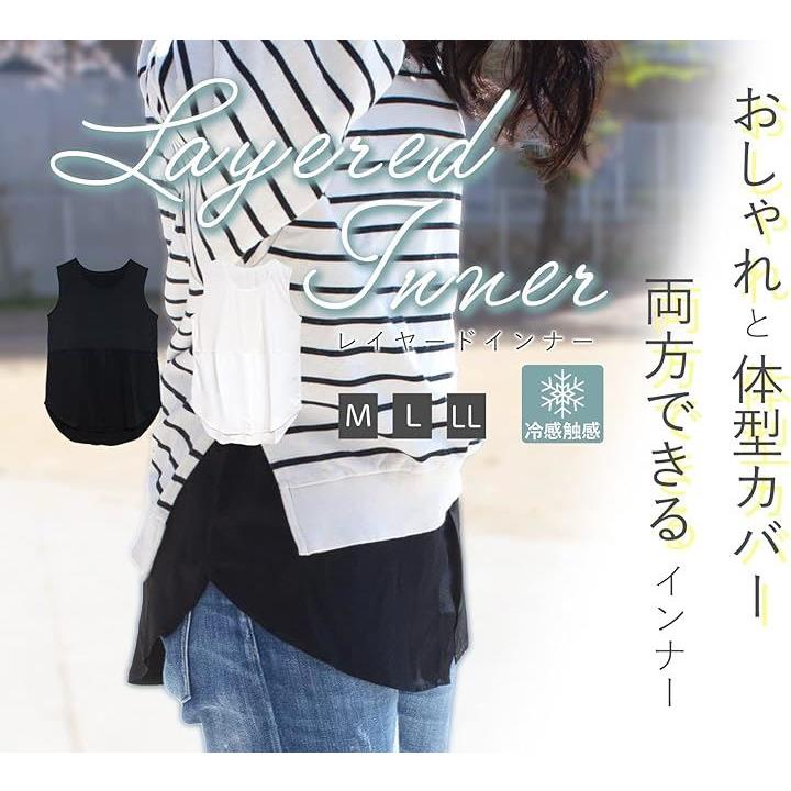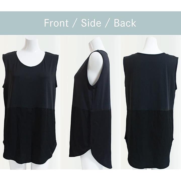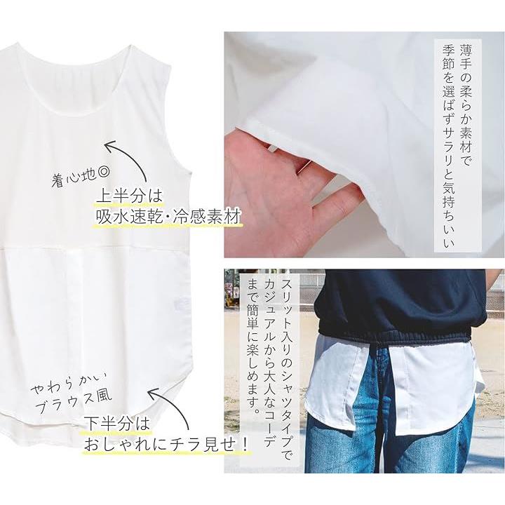 レディース タンクトップ 接触 冷感 ロング丈 レイヤード 重ね着 裾付き シャツ風 ビッグ 婦人インナーウエア 速乾性下着 ドライタンク モード系