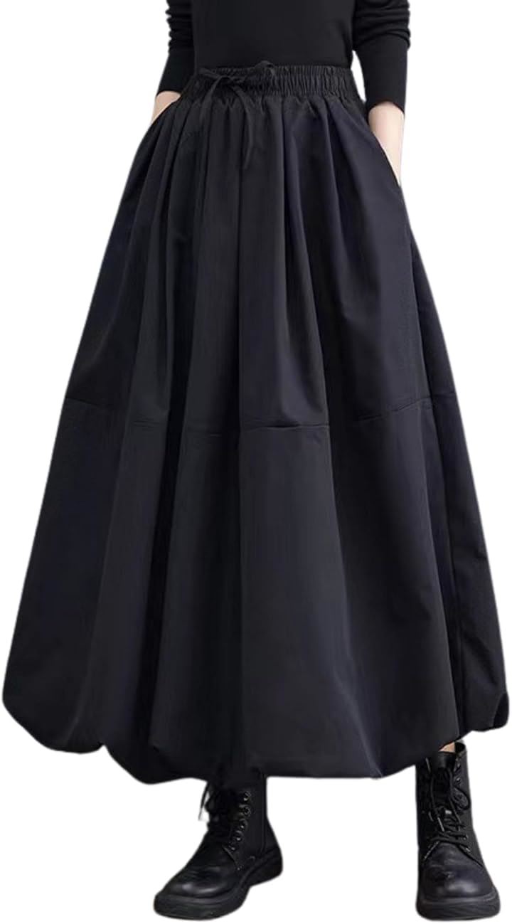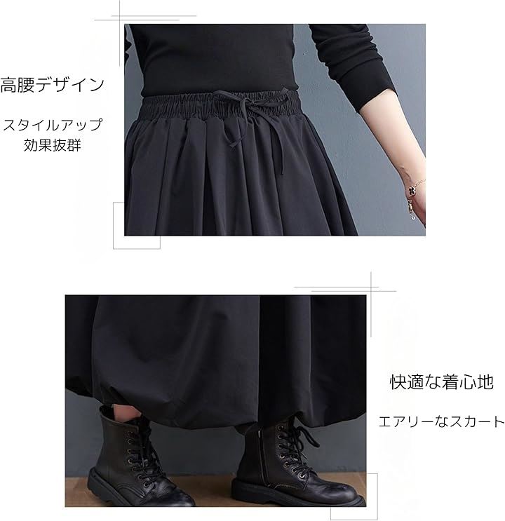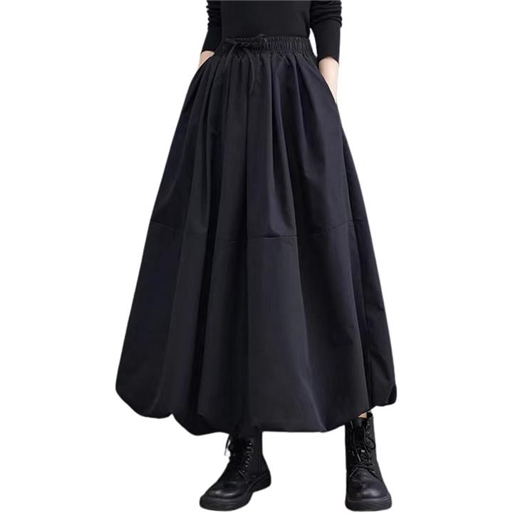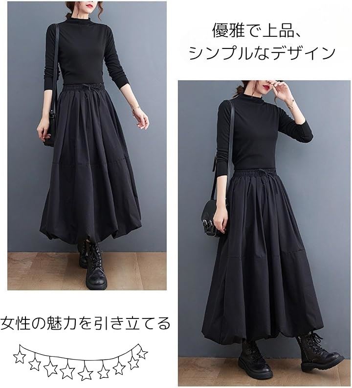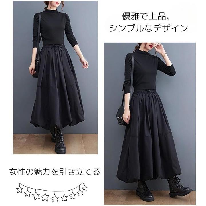 ロング スカート ウエストゴム バルーン コクーン カジュアル ミモレ 丈 レディース