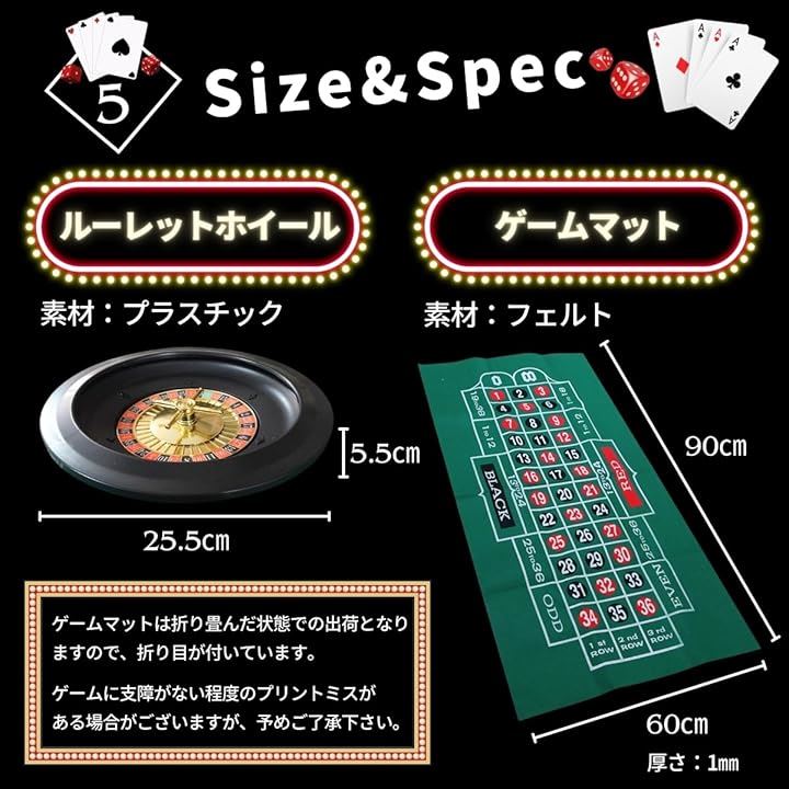 カジノ ルーレット トランプ ゲーム マット 90x60cm ホイール 25cm