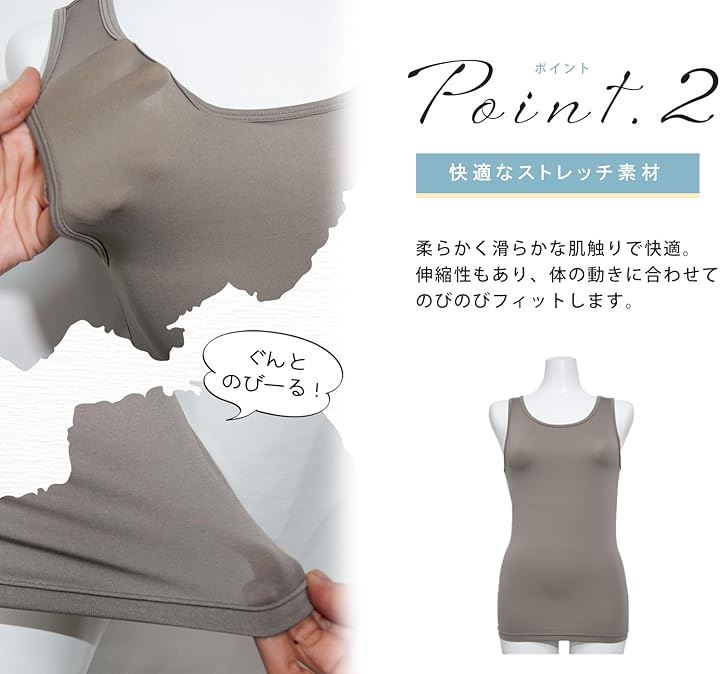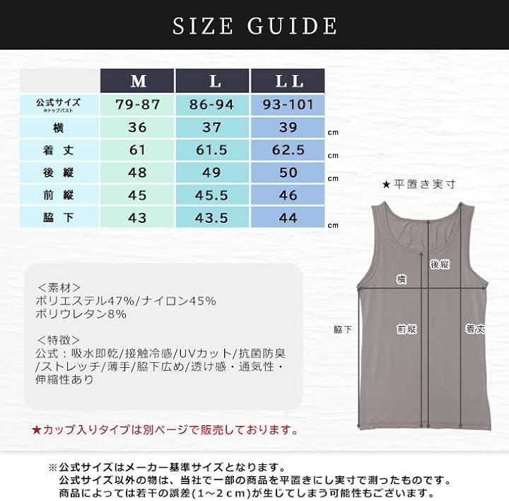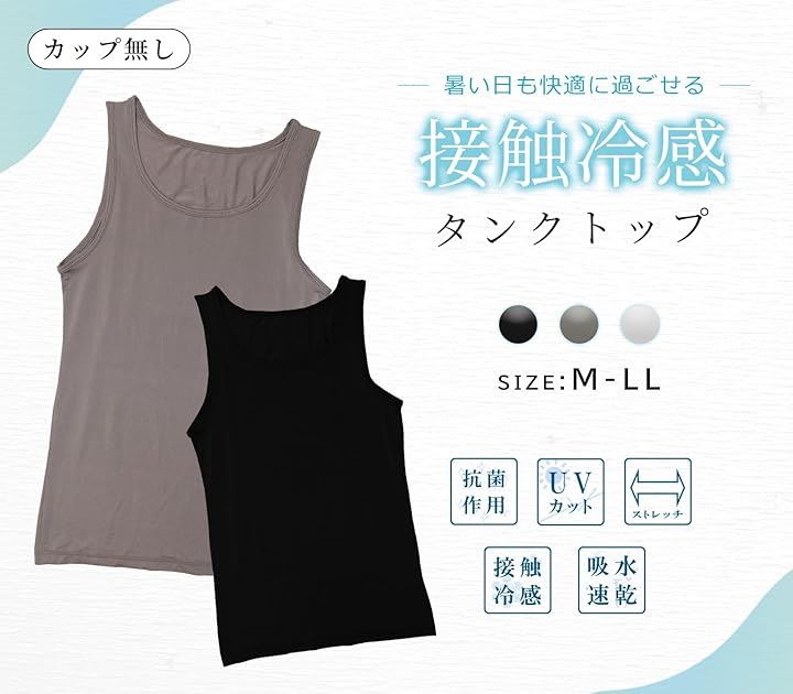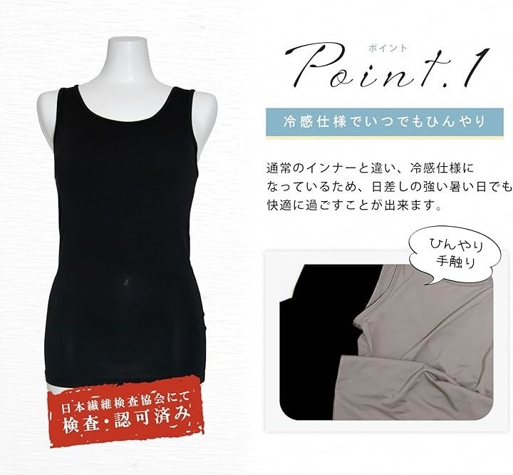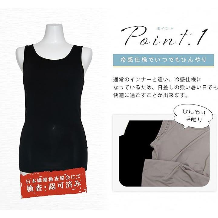 レディース タンクトップ カップなし インナー 女性 下着 ストレッチ 接触冷感 UV加工 吸水速乾 抗菌 無地 検査認可済み 単品 室内