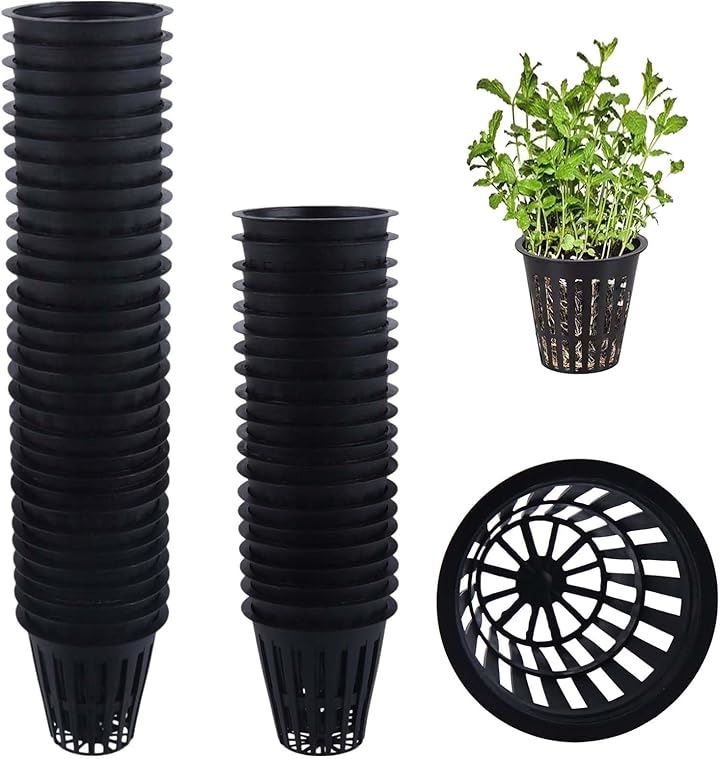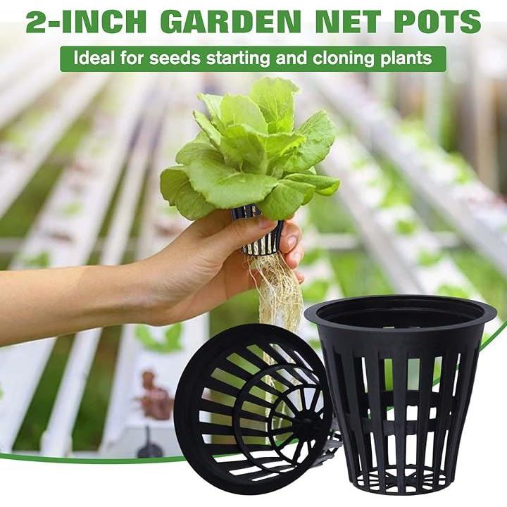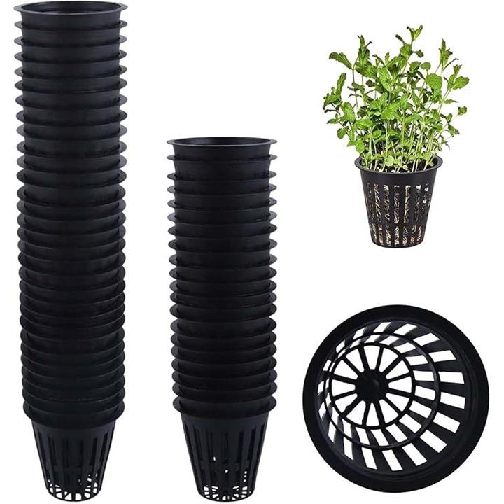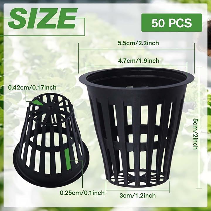 水耕栽培 ポット 径5.5mm 給水栽培 かご鉢 50個セット 定植かご スロット付き ガーデンネットポット ネットカップ メッシュ プラスチック ブラック 円筒形 軽量