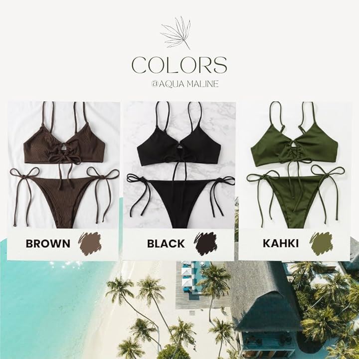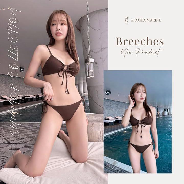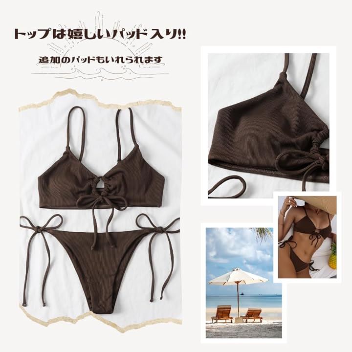 [AQUA Marine] 紐ビキニ レディース 上下セット バスト盛れ 紐パン 大人可愛い セクシー カジュアル リブ素材 夏 海 プール シンプル ナチュラルカラー ビーチウェア |