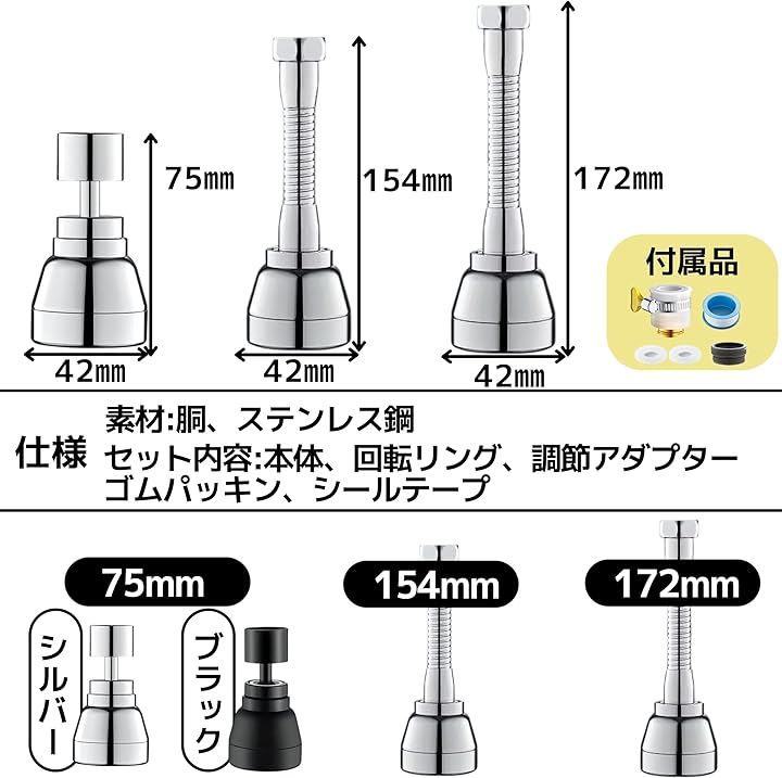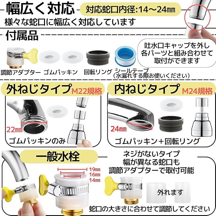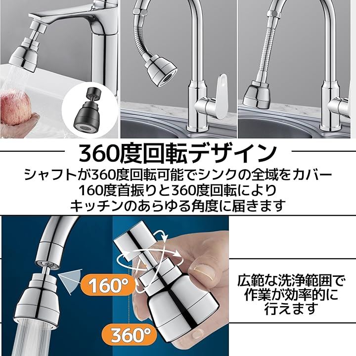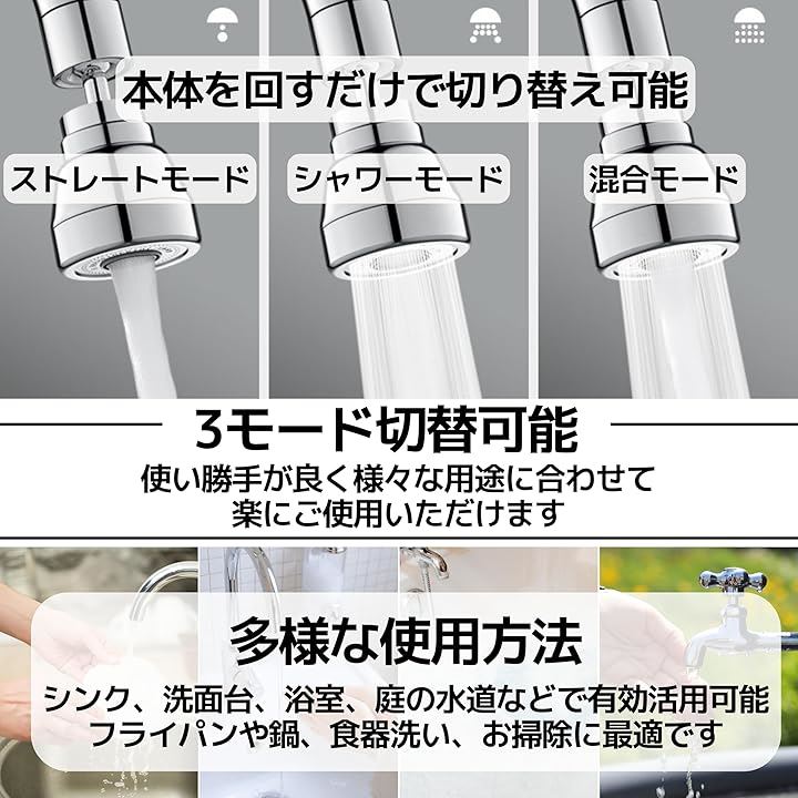 蛇口 シャワー ヘッド ノズル 水道 キッチン 160度首振り 360度全方向回転 3モード切り替え L 15cm