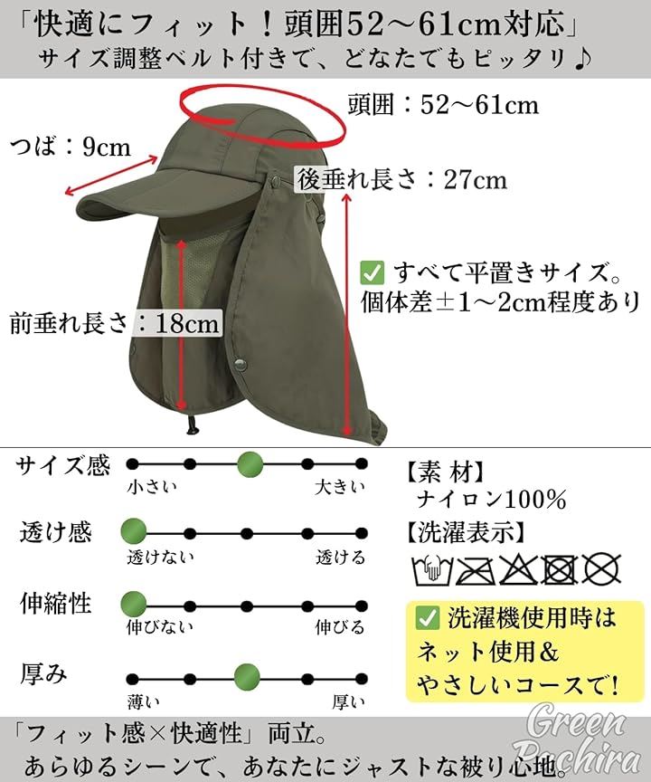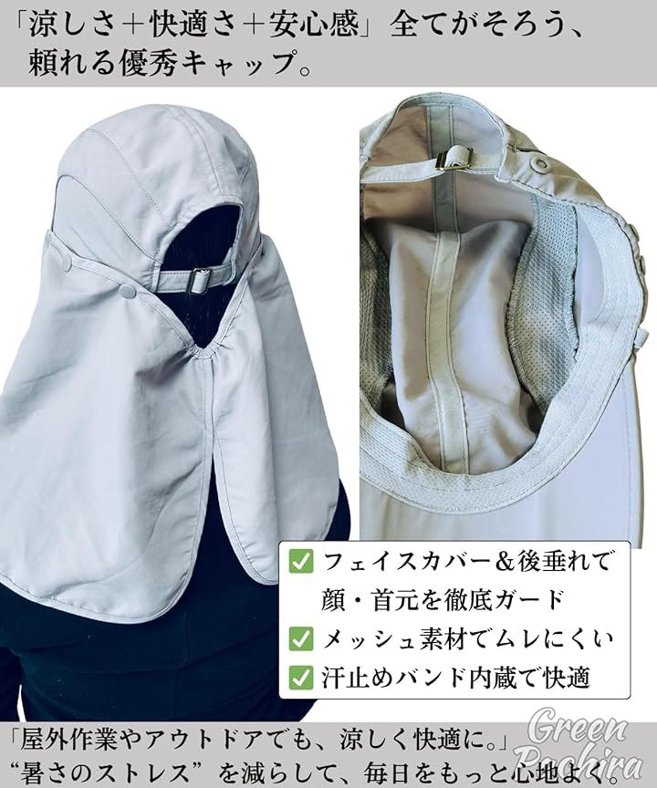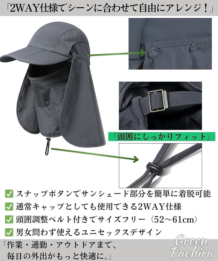 [グリーンパキラ] サンシェード 帽子 日除け 後付け UVカット キャップ レディース 日焼け防止 紫外線対策 ハット 自転車 保育士 ウォーキング ガーデニング ランニング アウトドア 畑仕事 首カバー フェイスカバー 作業帽 メッシュ 通気性 速乾 軽量 |