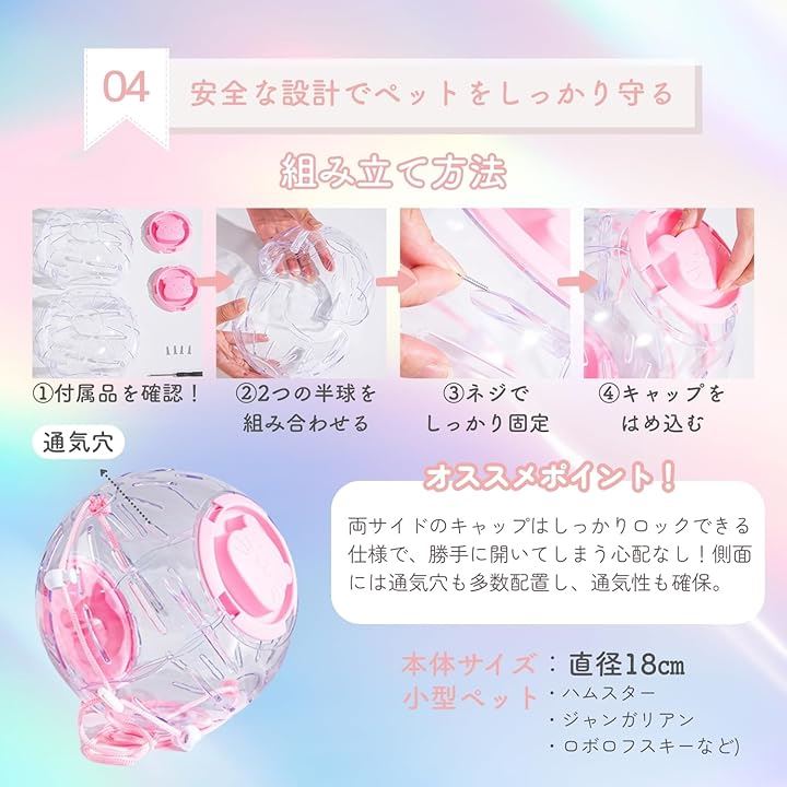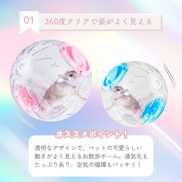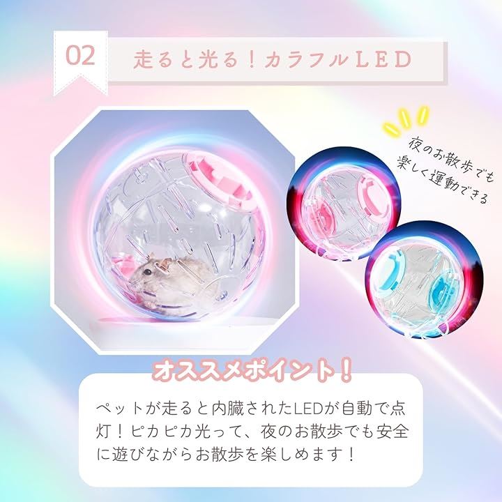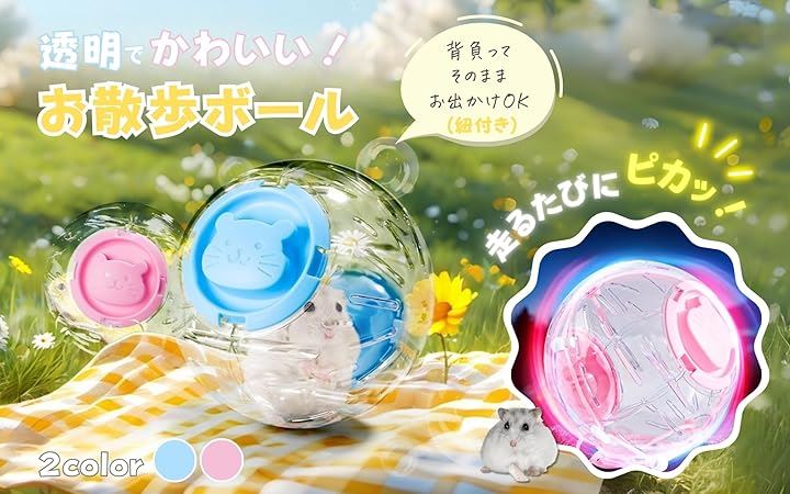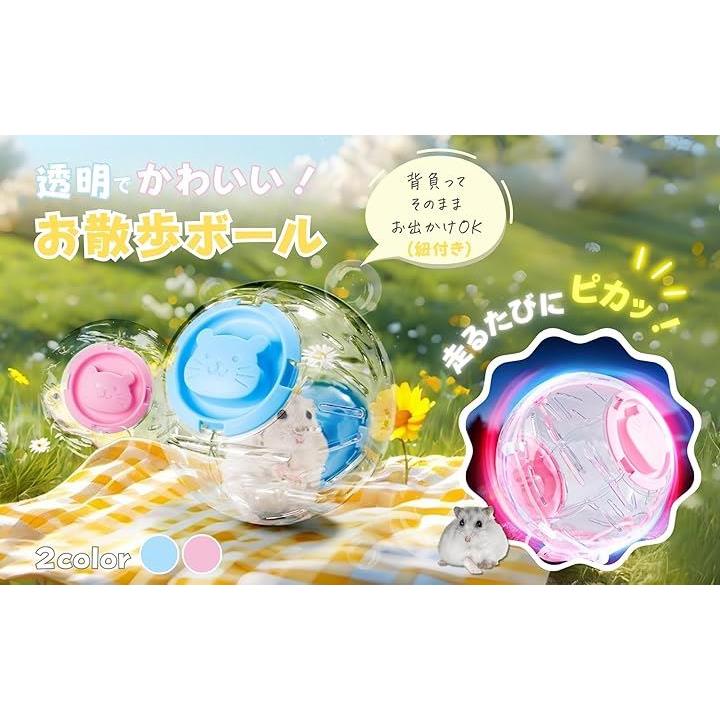 ハムスター おもちゃ お散歩ボール ひも付き ピンク走ると光る