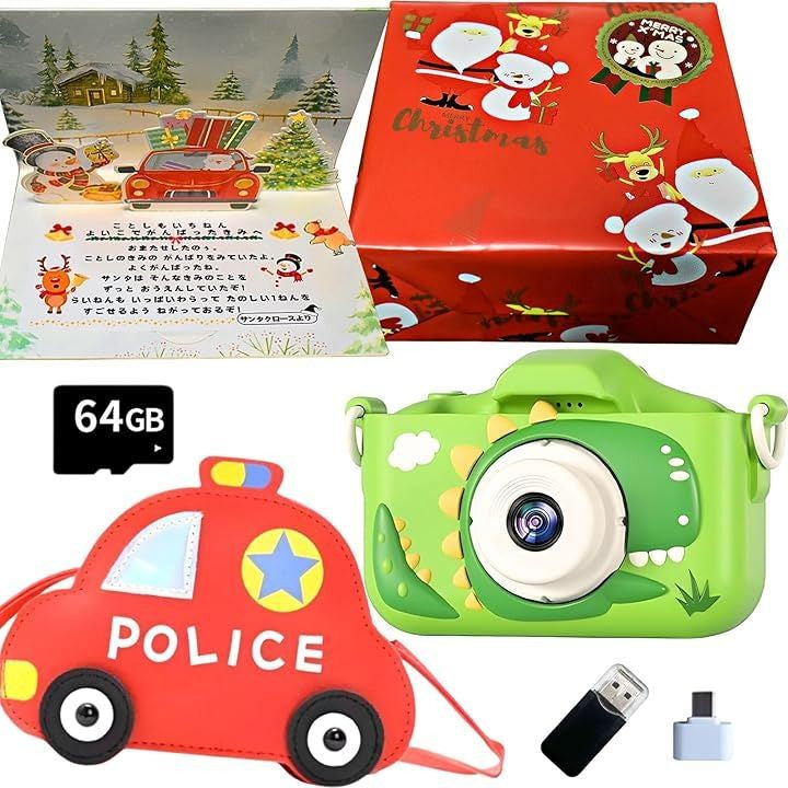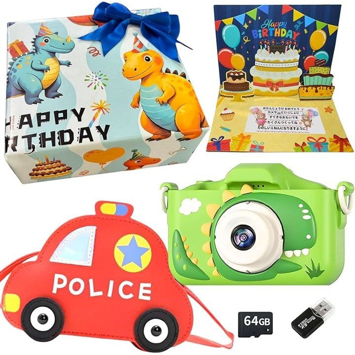 恐竜デザインがかわいいキッズカメラは、男の子に大人気。4800万画素の高画質で、写真も動画も楽しめる本格的な子供用カメラです。