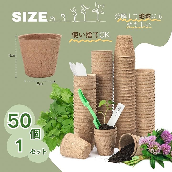育苗ポット 紙パルプ ペーパーポット 家庭菜園 ガーデニング 50個セット